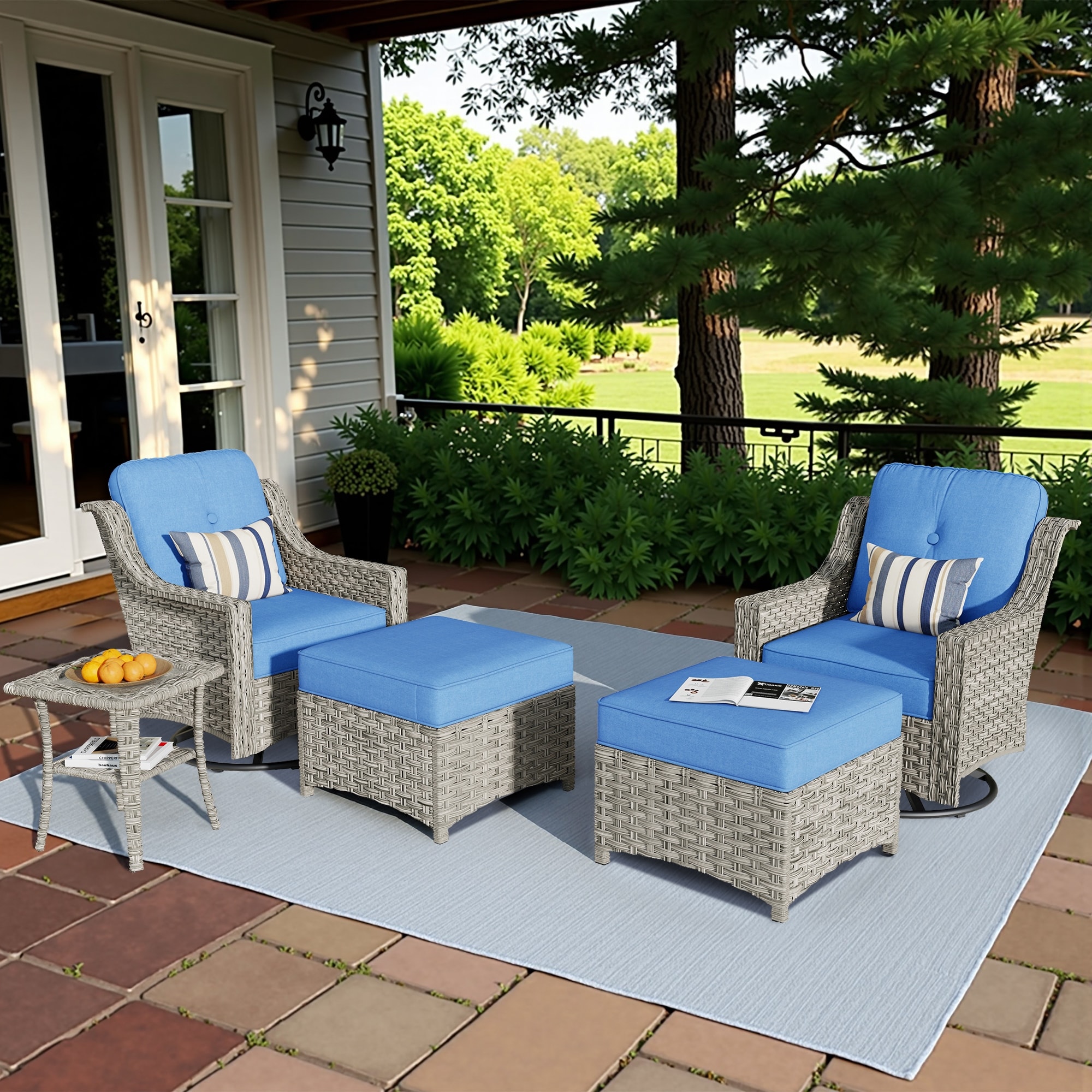HOOOWOOO 5-piece Patio Swivel Rocking Chair Chat Set with Ottoman