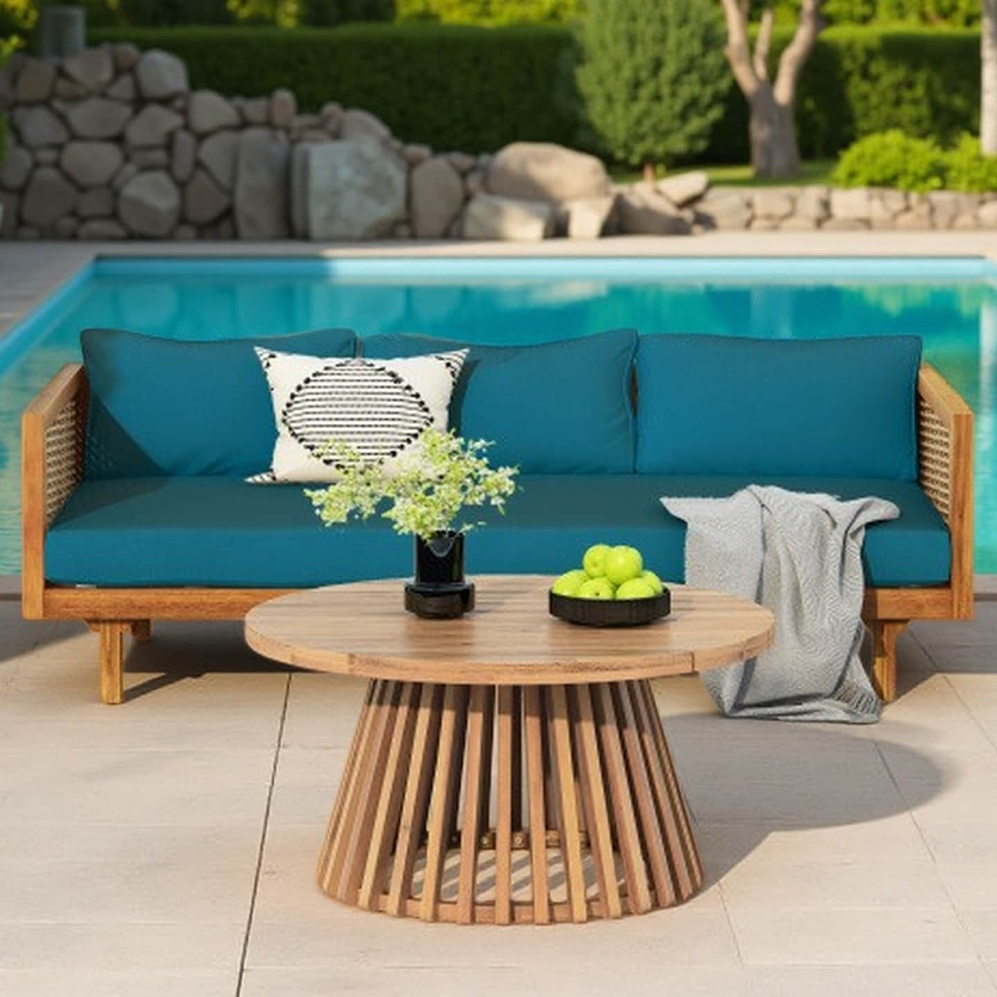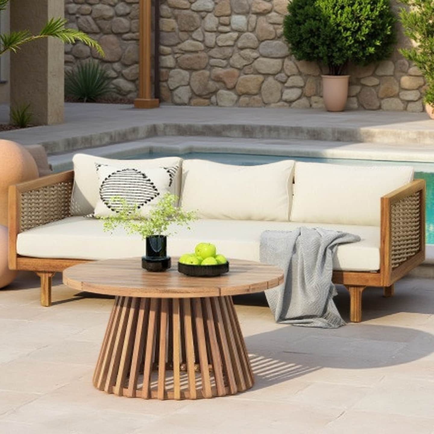 3-Seater Outdoor Daybed with Acacia Wood Coffee Table, Water-Resistant Cushions, Stylish Patio Furniture Set