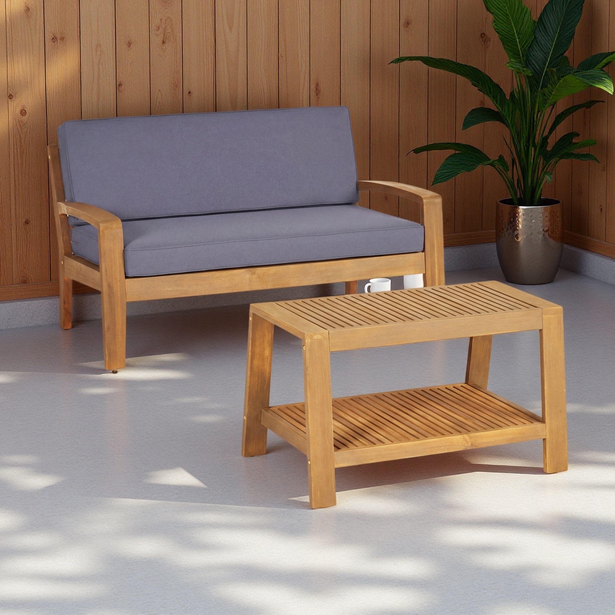 2-Piece Outdoor Acacia Wood Weather-Resistant Loveseat Set with Water-Resistant Cushions and 350lbs Capacity