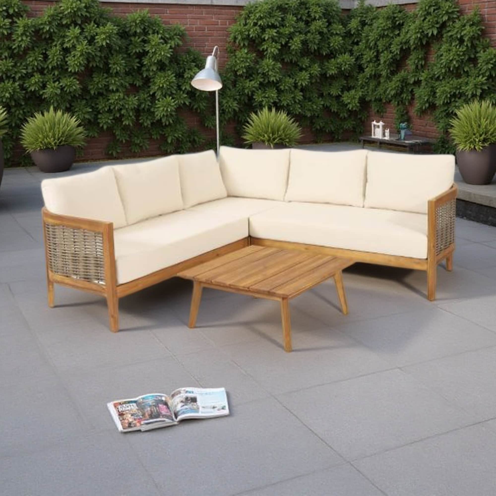 4-Piece Outdoor Acacia Wood Sectional Sofa Set with Corner Chair, 2 Loveseats, Coffee Table and Cushions