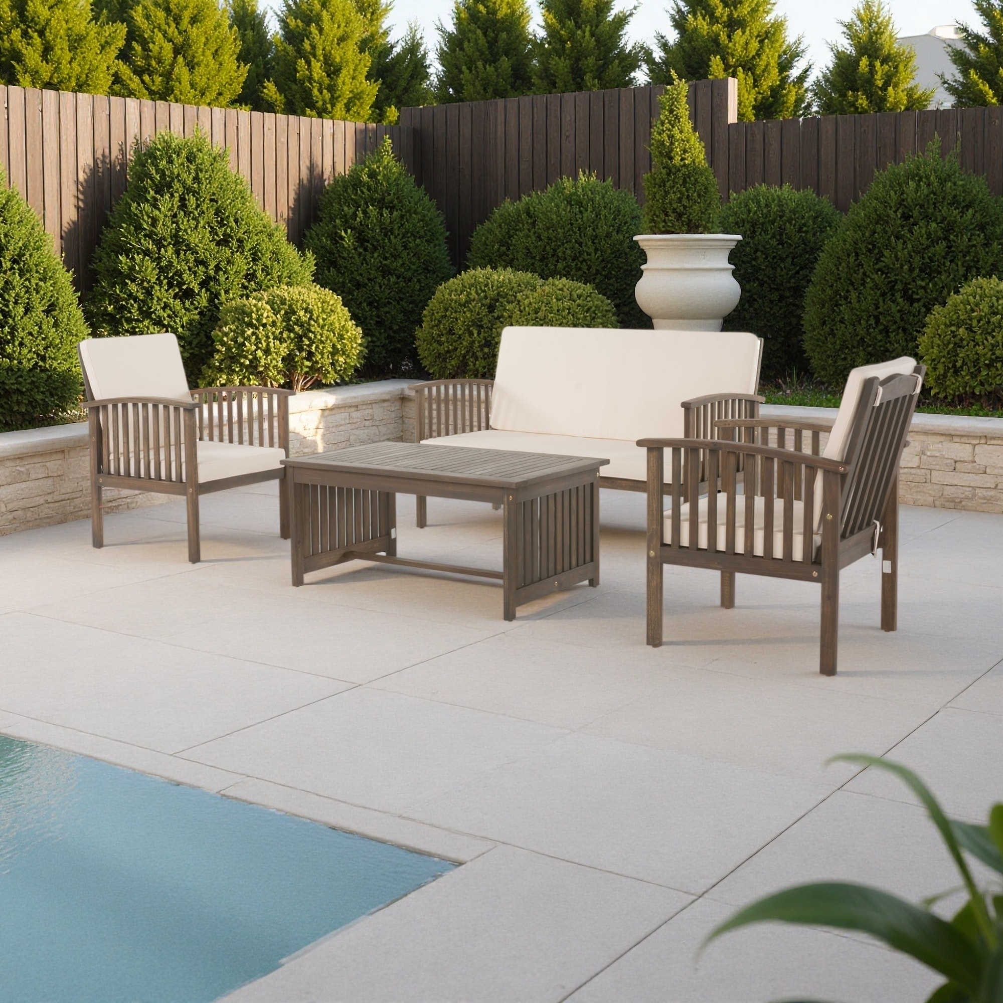 4-Piece Outdoor Acacia Wood Loveseat Set with Water-Resistant Cushions