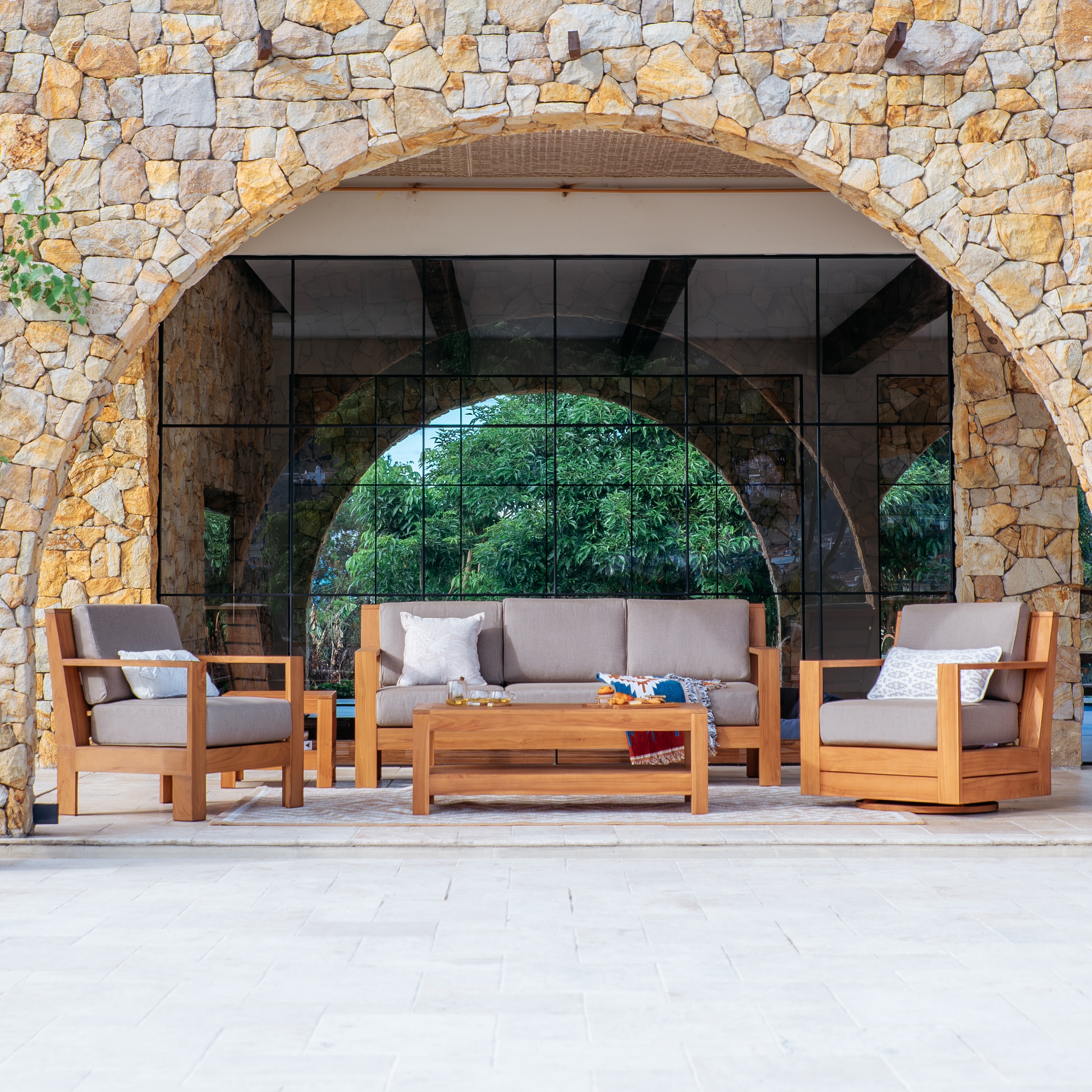 Cambridge Casual Logan 5-Piece Indonesian Teak Patio Outdoor Conversation Set with Sunbrella Cushions