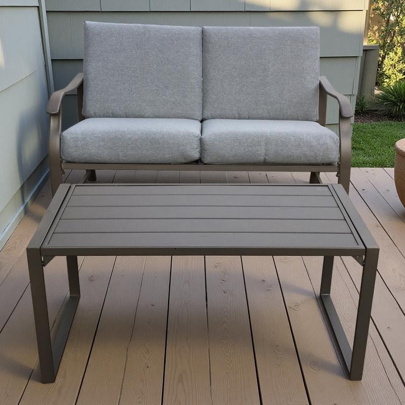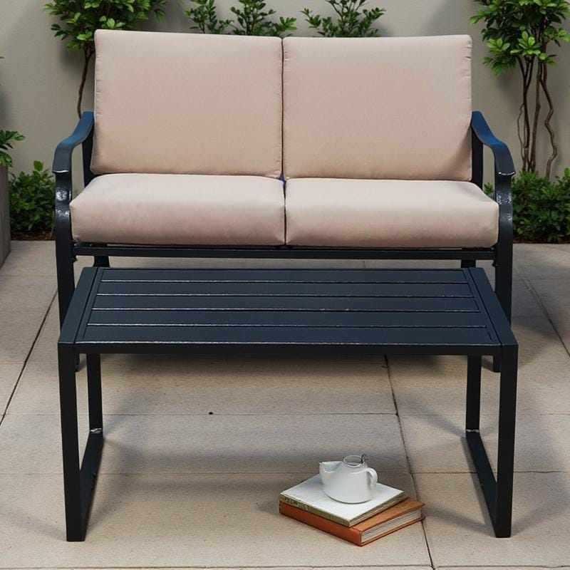 2-Person Outdoor Metal Loveseat Set with Side Table