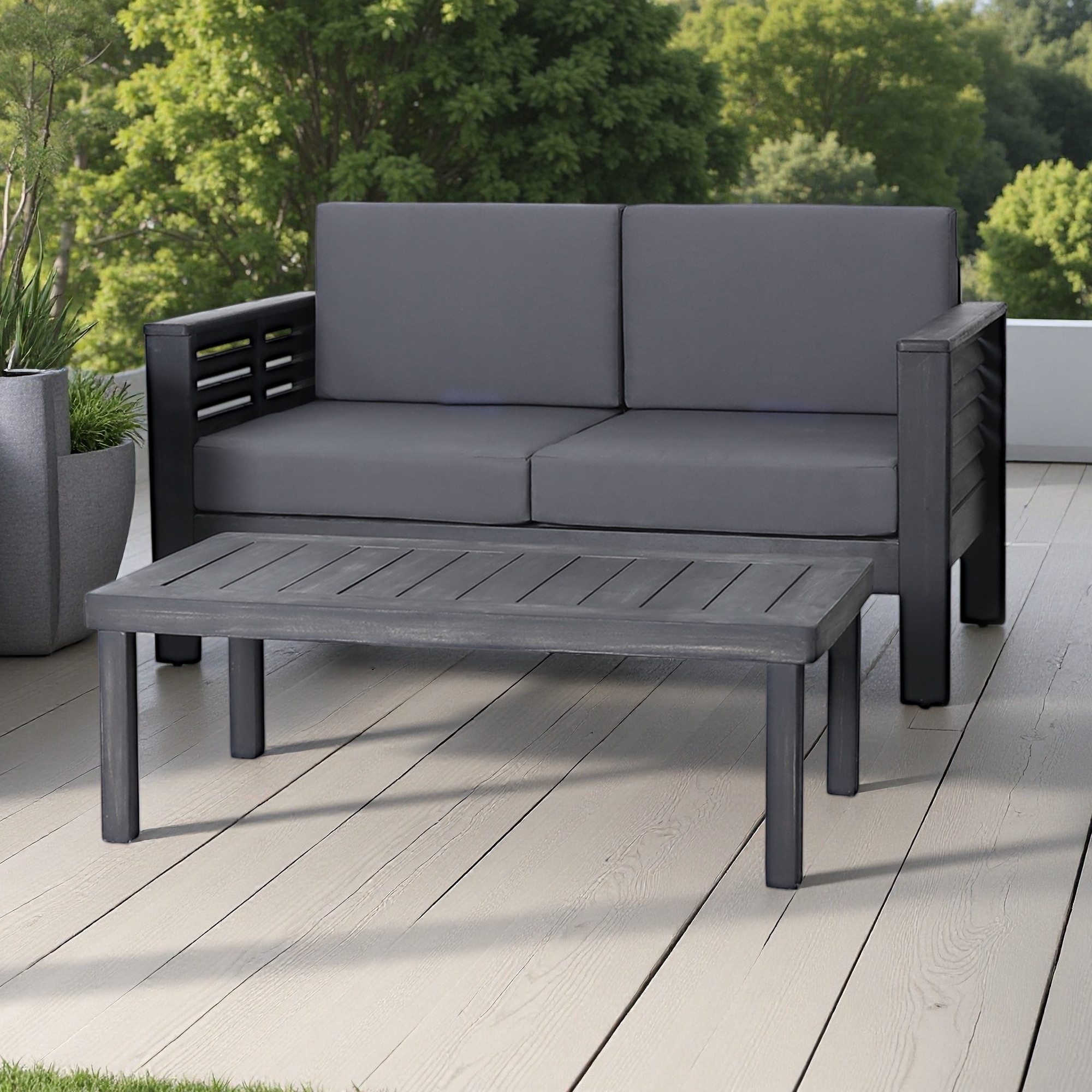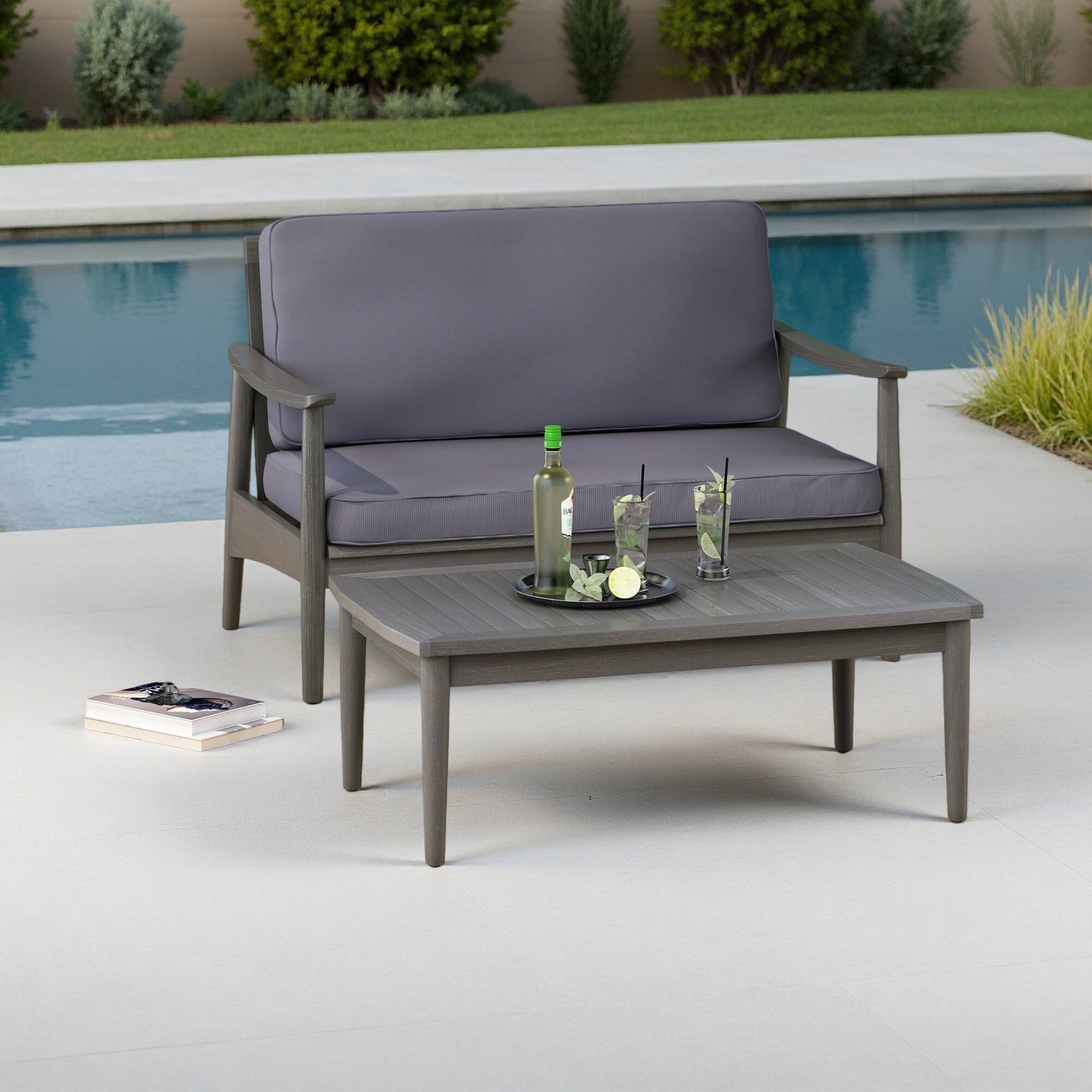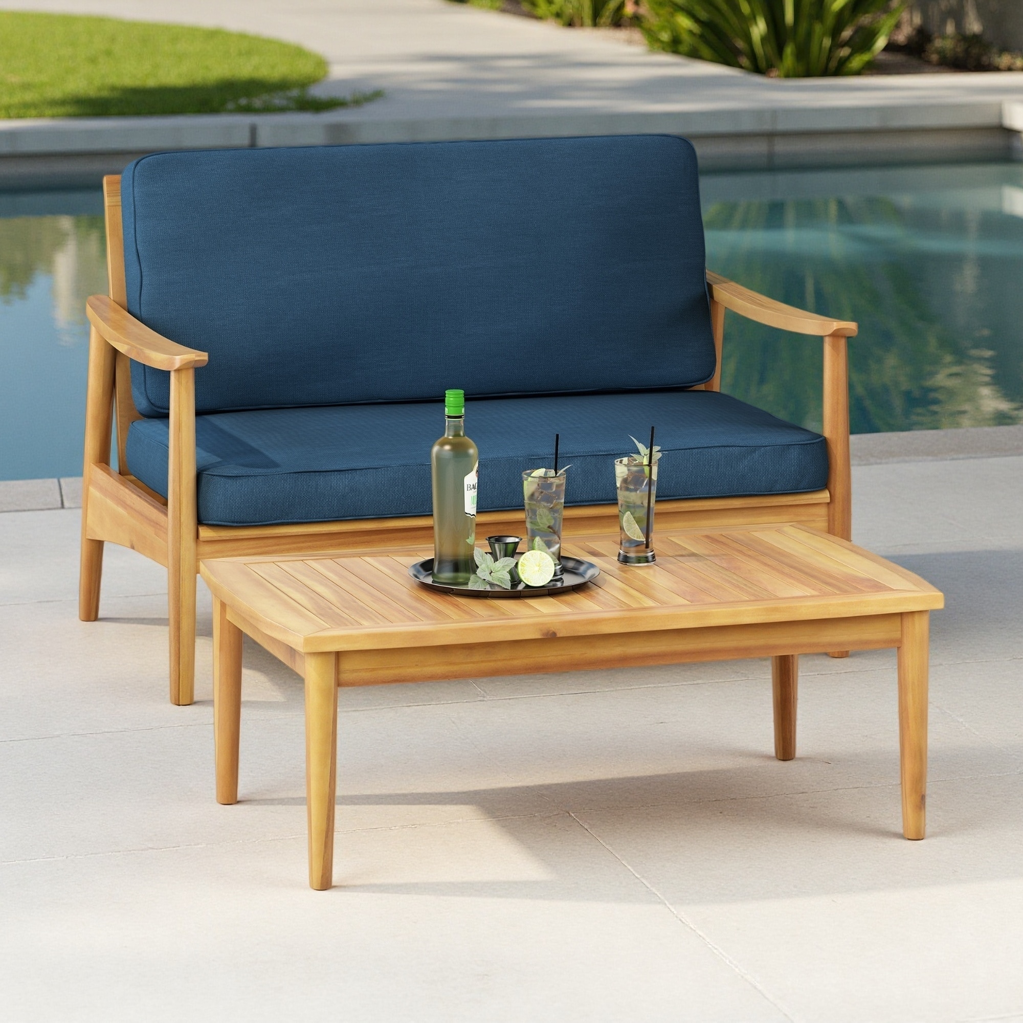 Teak Wood Water Resistant Outdoor Loveseat and Coffee Table Set (Set of 2)