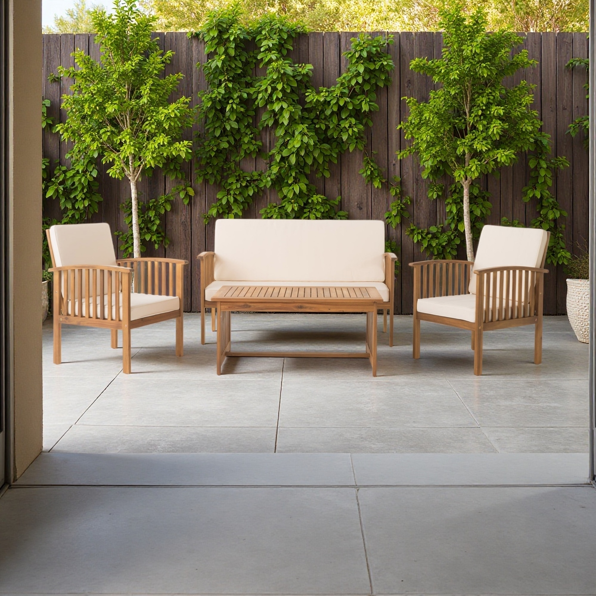 4-Piece Outdoor Acacia Wood Loveseat Set with Water-Resistant Cushions