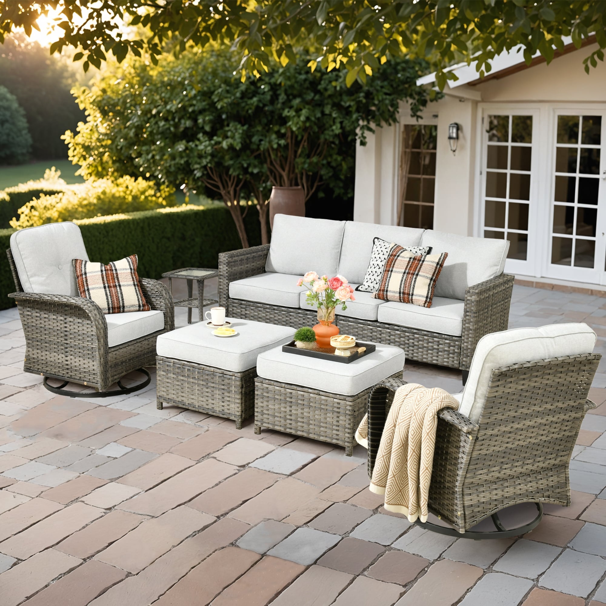 OVIOS 6-piece Patio Wicker Swivel Rocking Chair Set With Ottoman