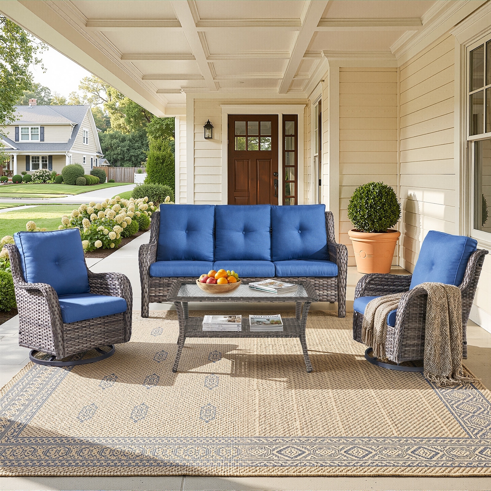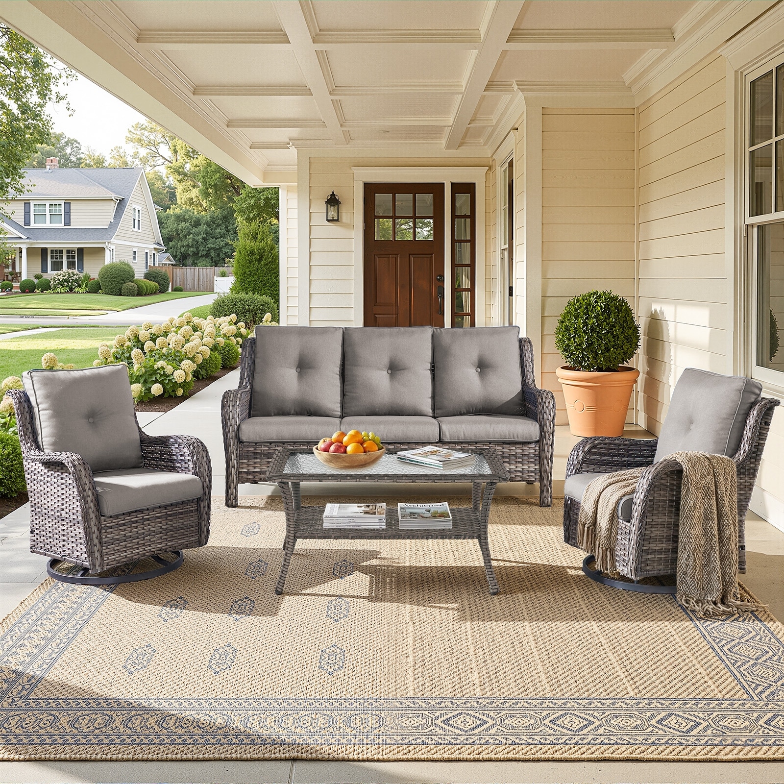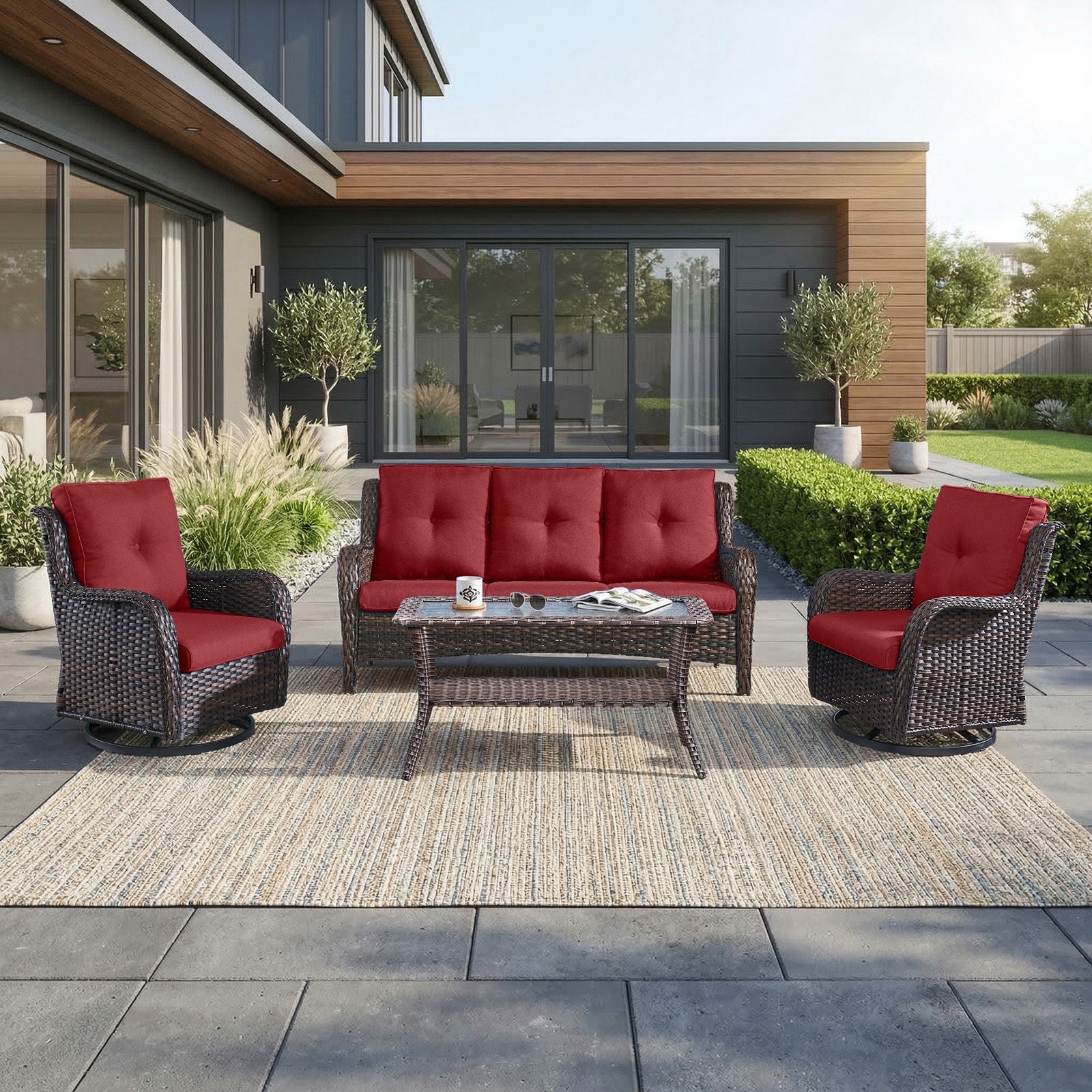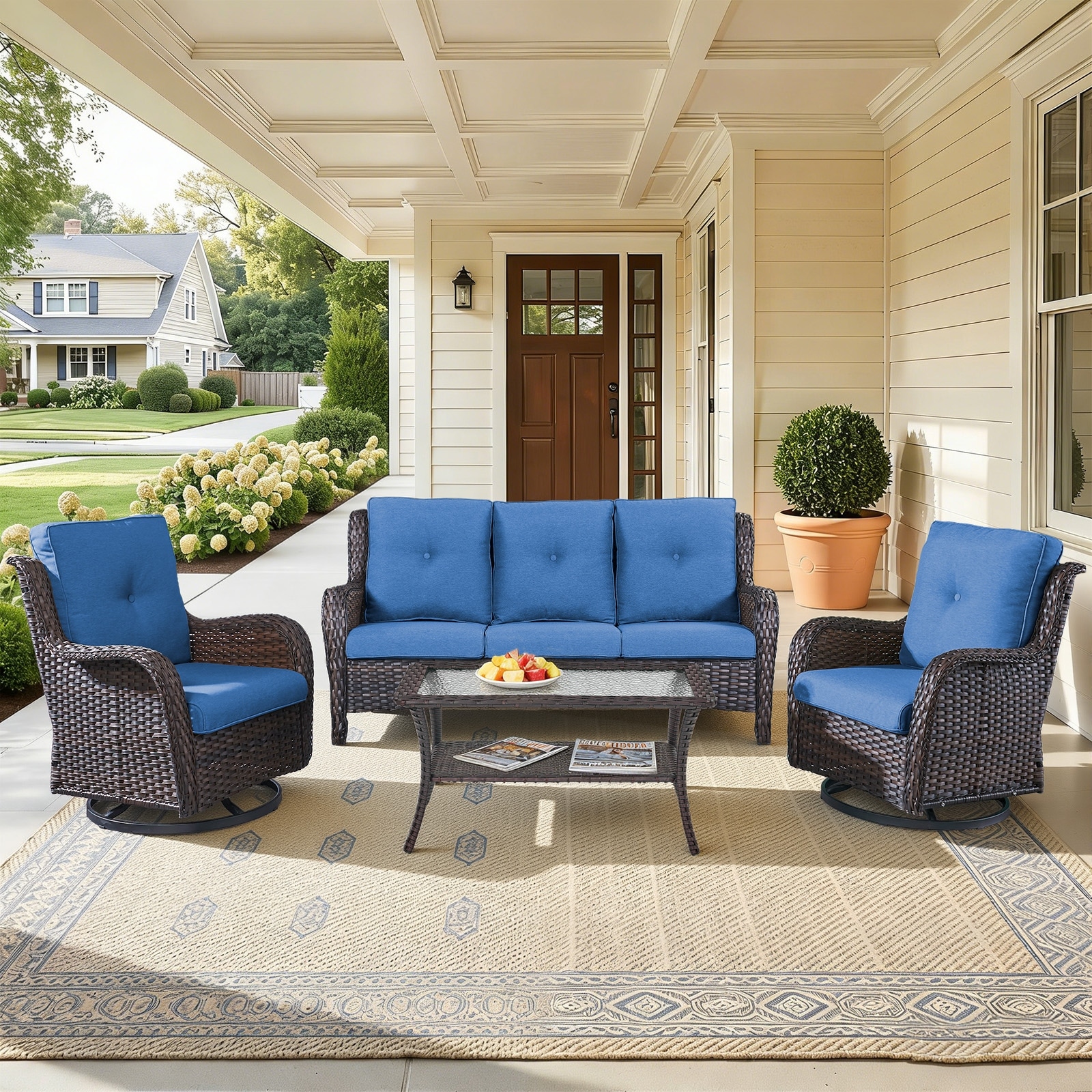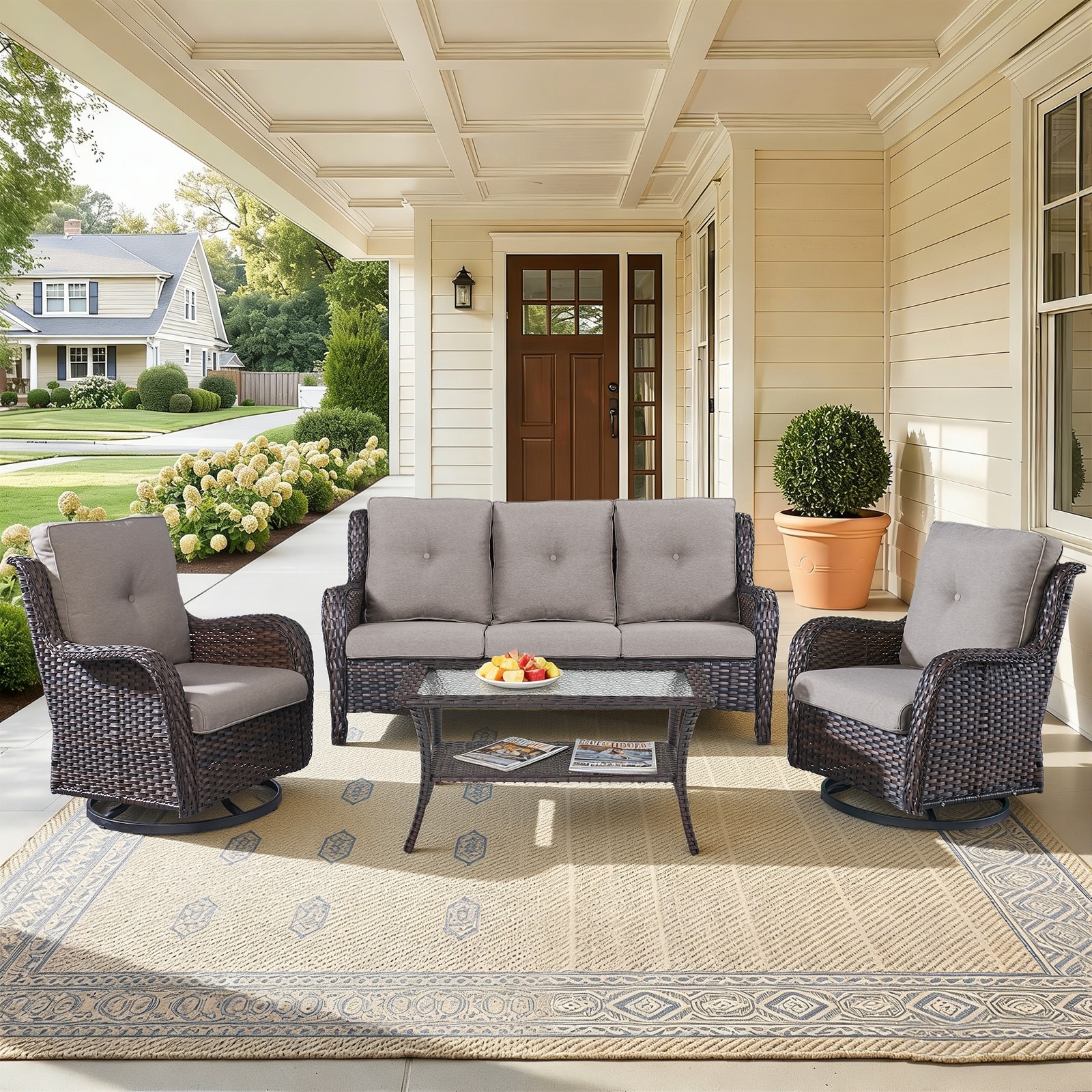 Pocassy Patio Sofa Swivel Glider Chair with 4-Thick Cushion Set