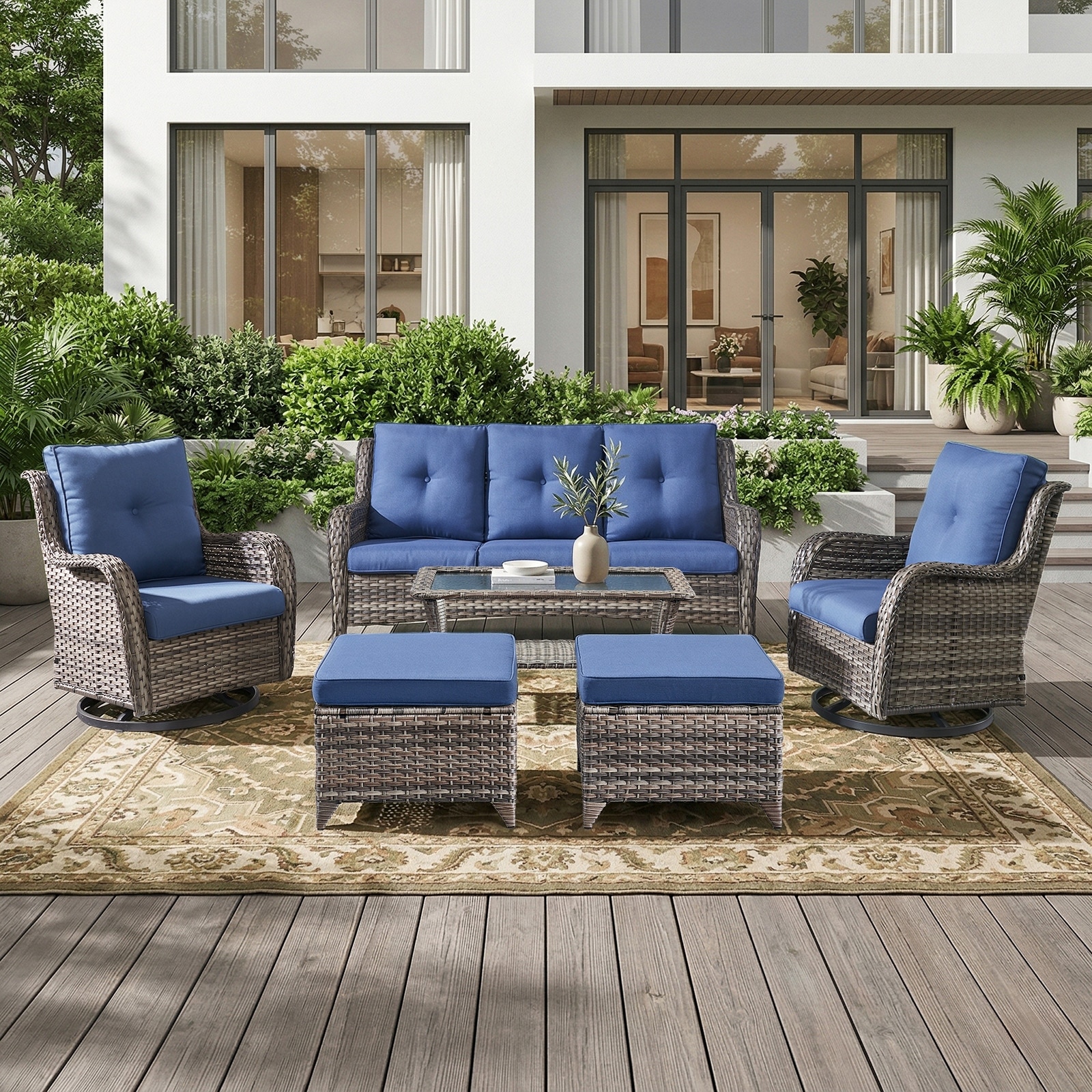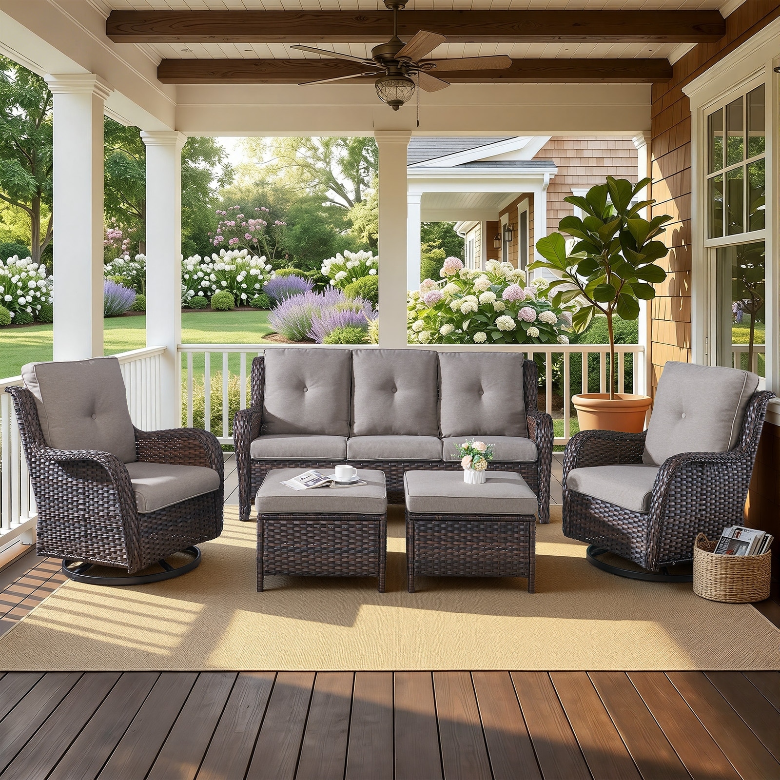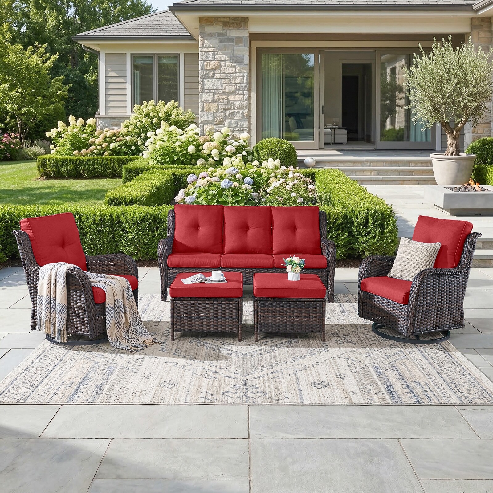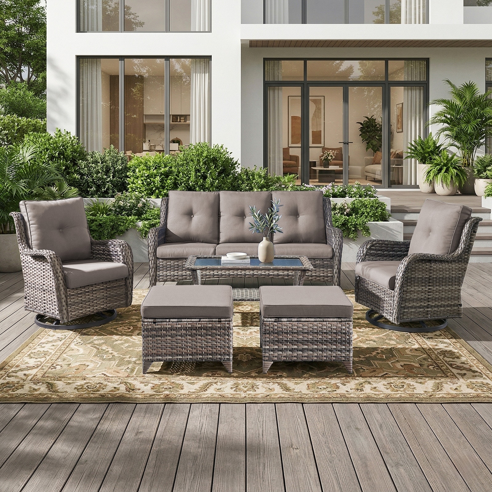 Pocassy Patio Sofa Swivel Glider Chair with 4-Thick Cushion Set