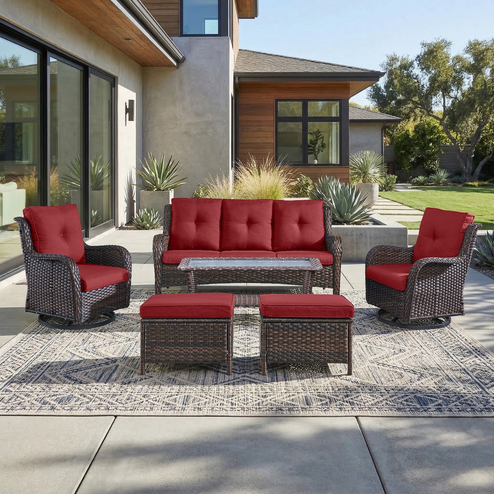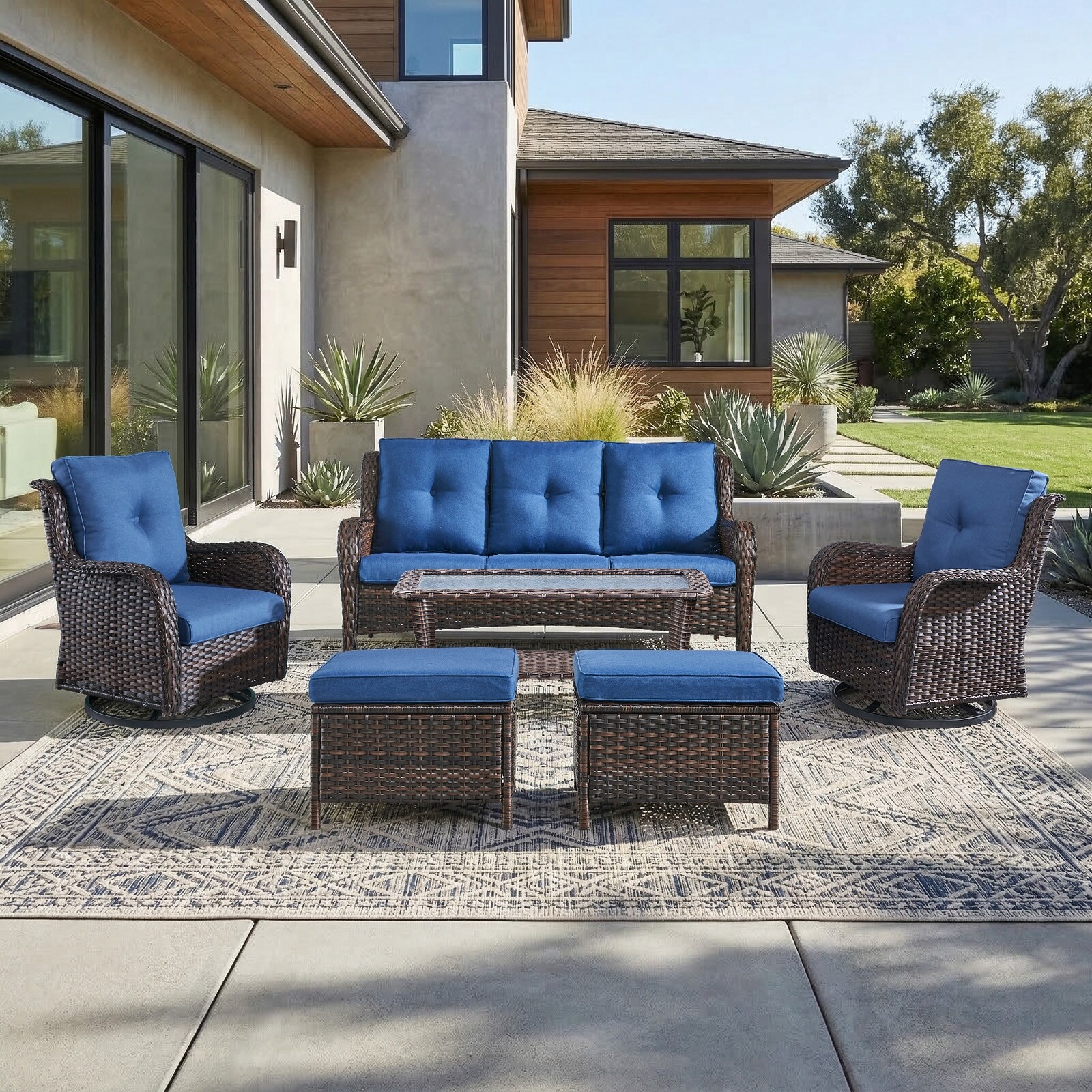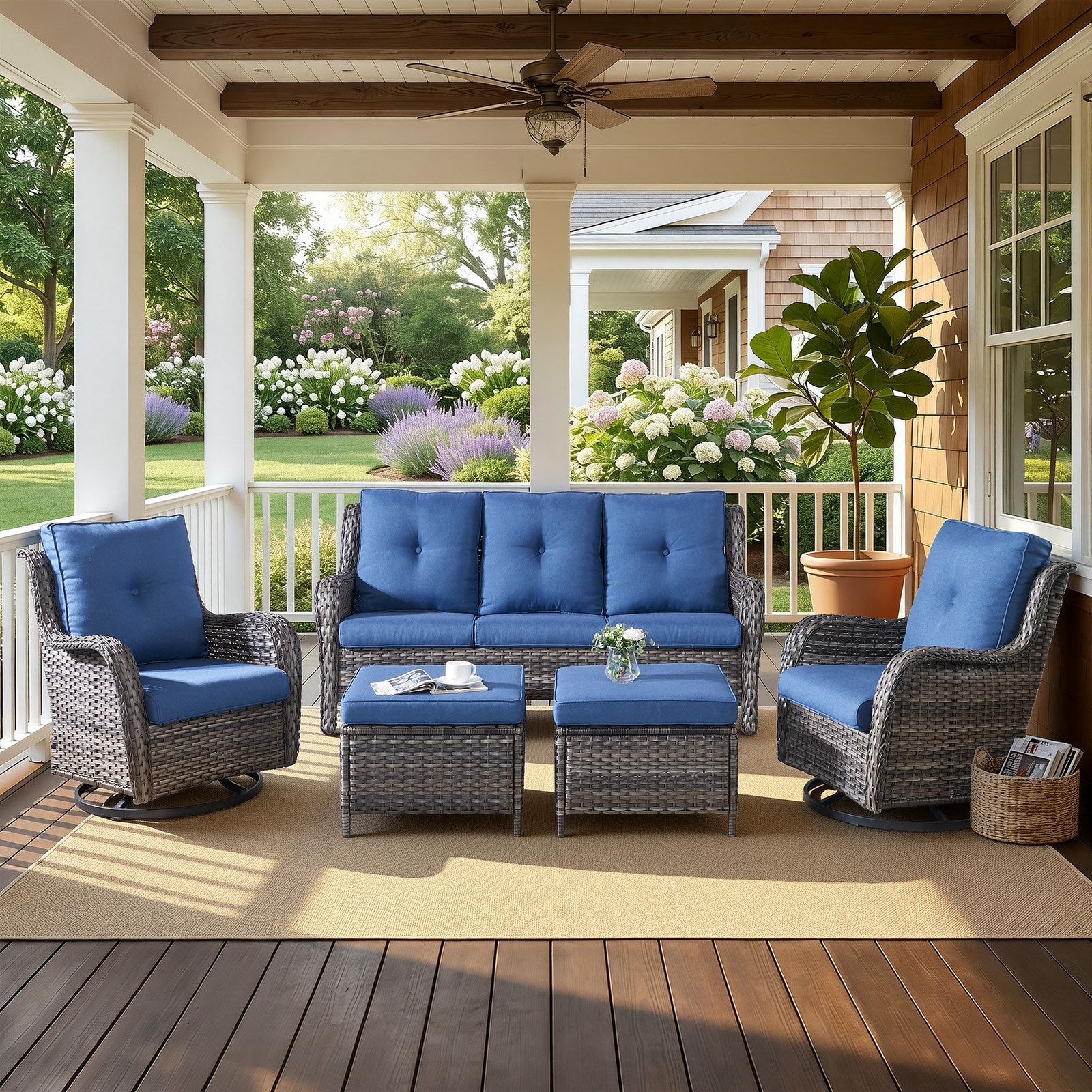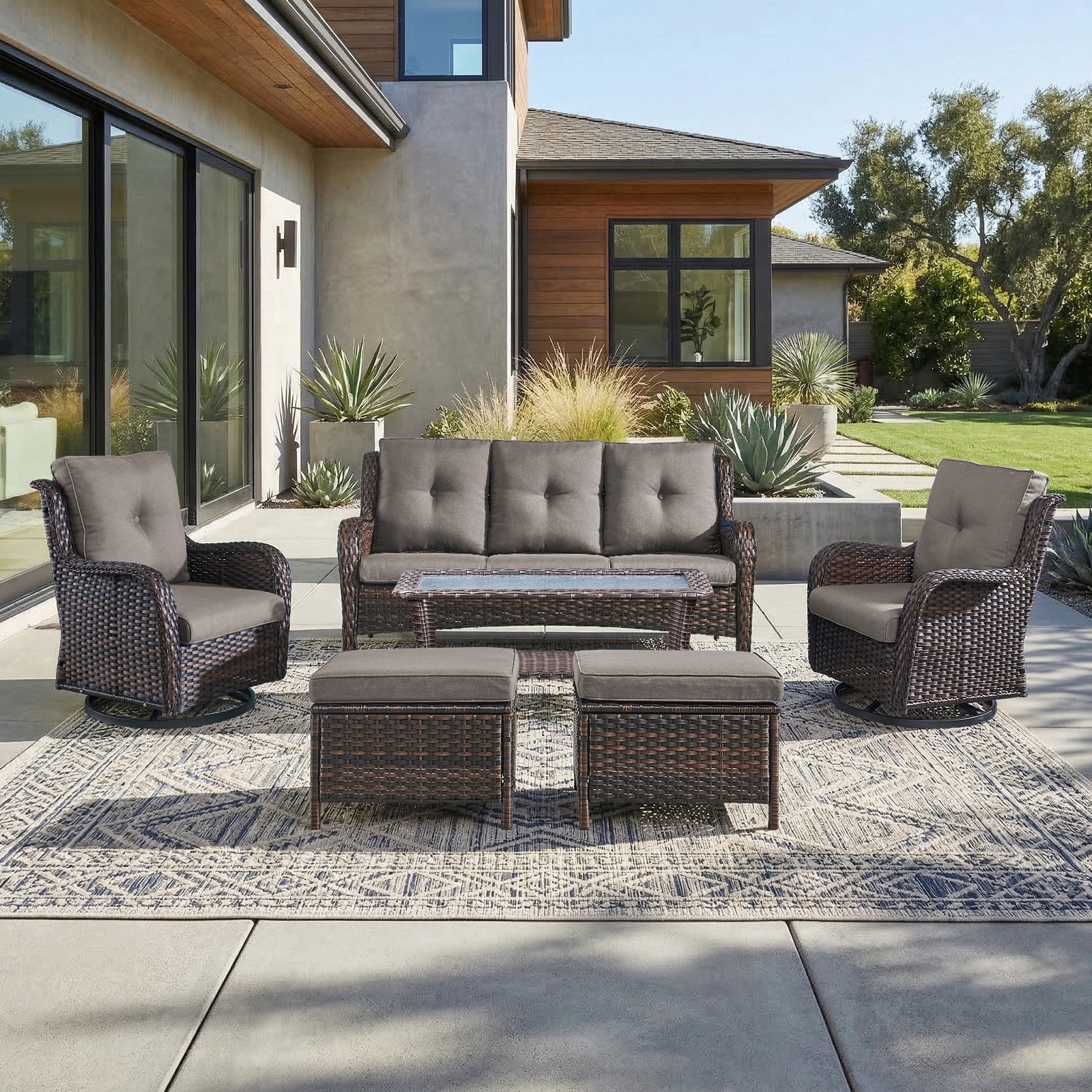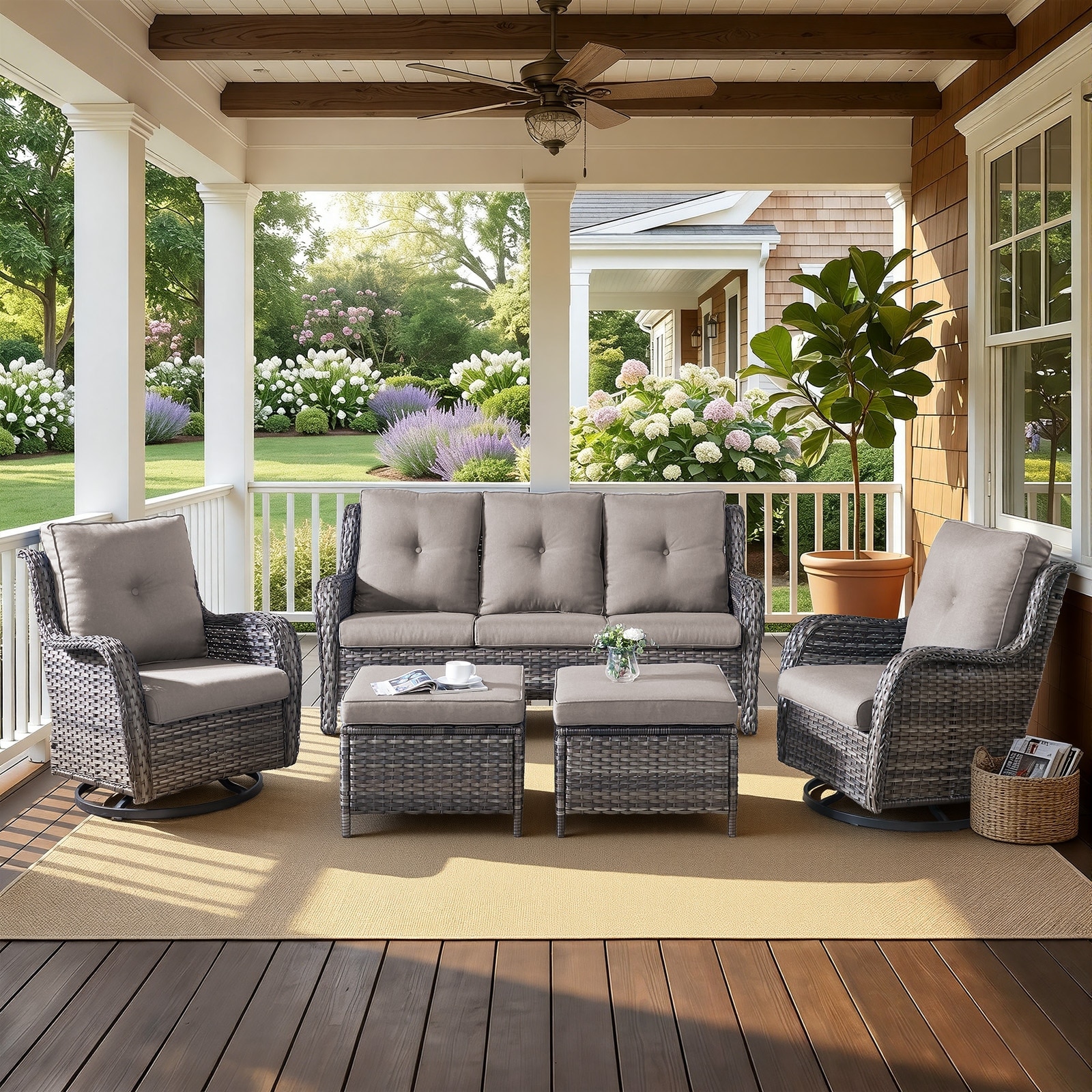 Pocassy Patio Sofa Swivel Glider Chair with 4-Thick Cushion Set