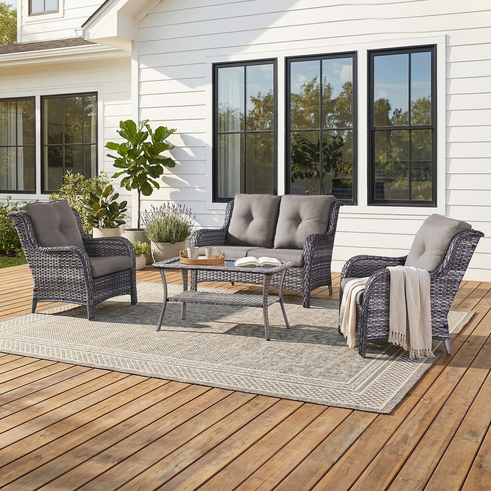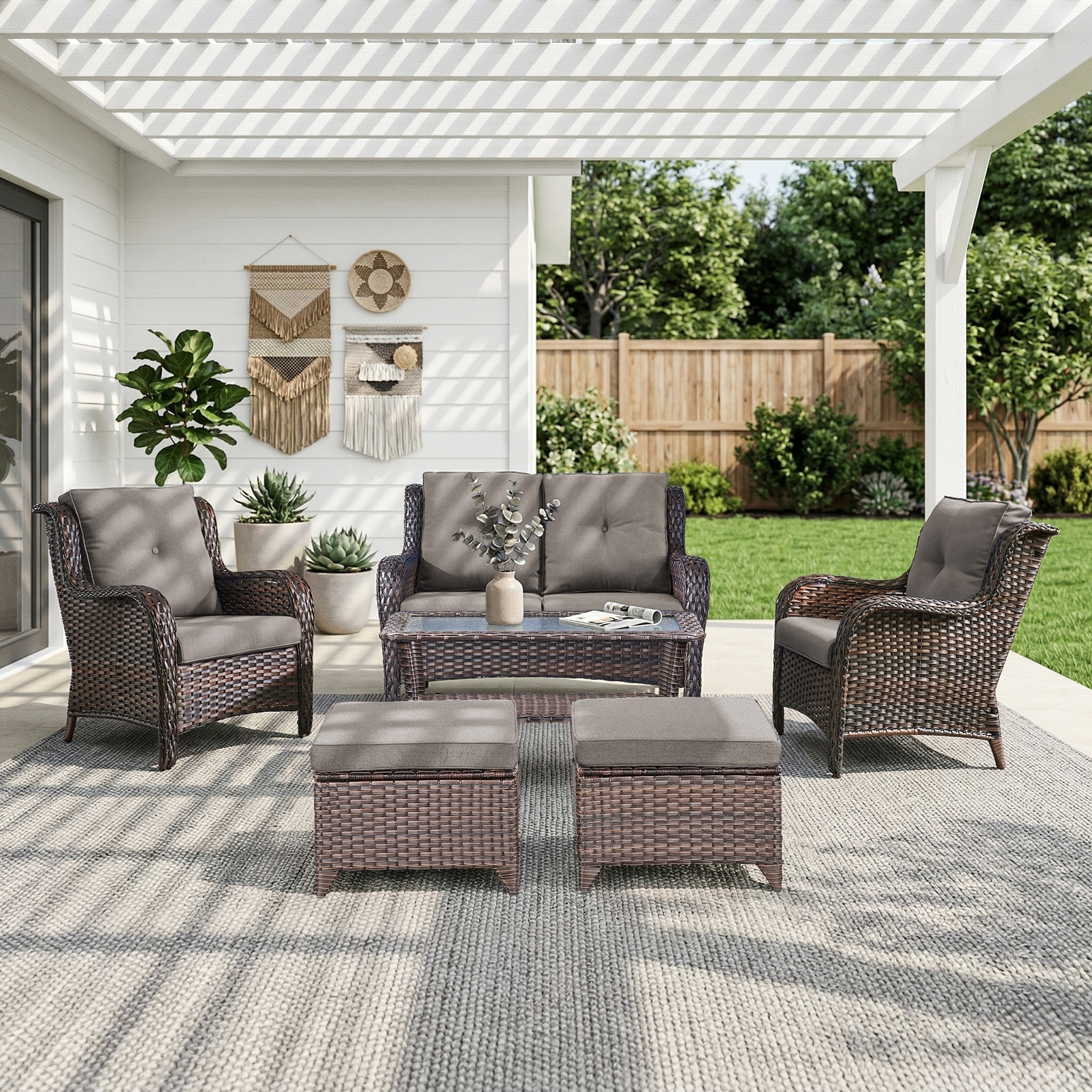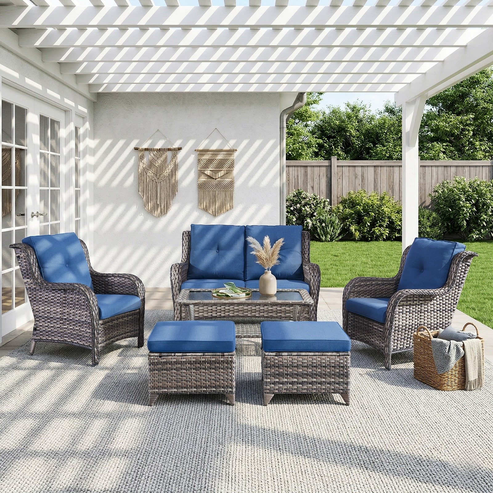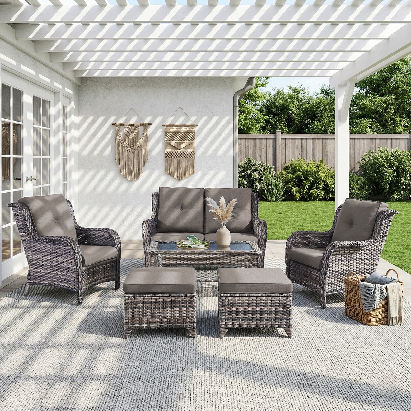 Pocassy Patio Loveseat Sofa Wicker Chair with 4-Thick Cushion Set