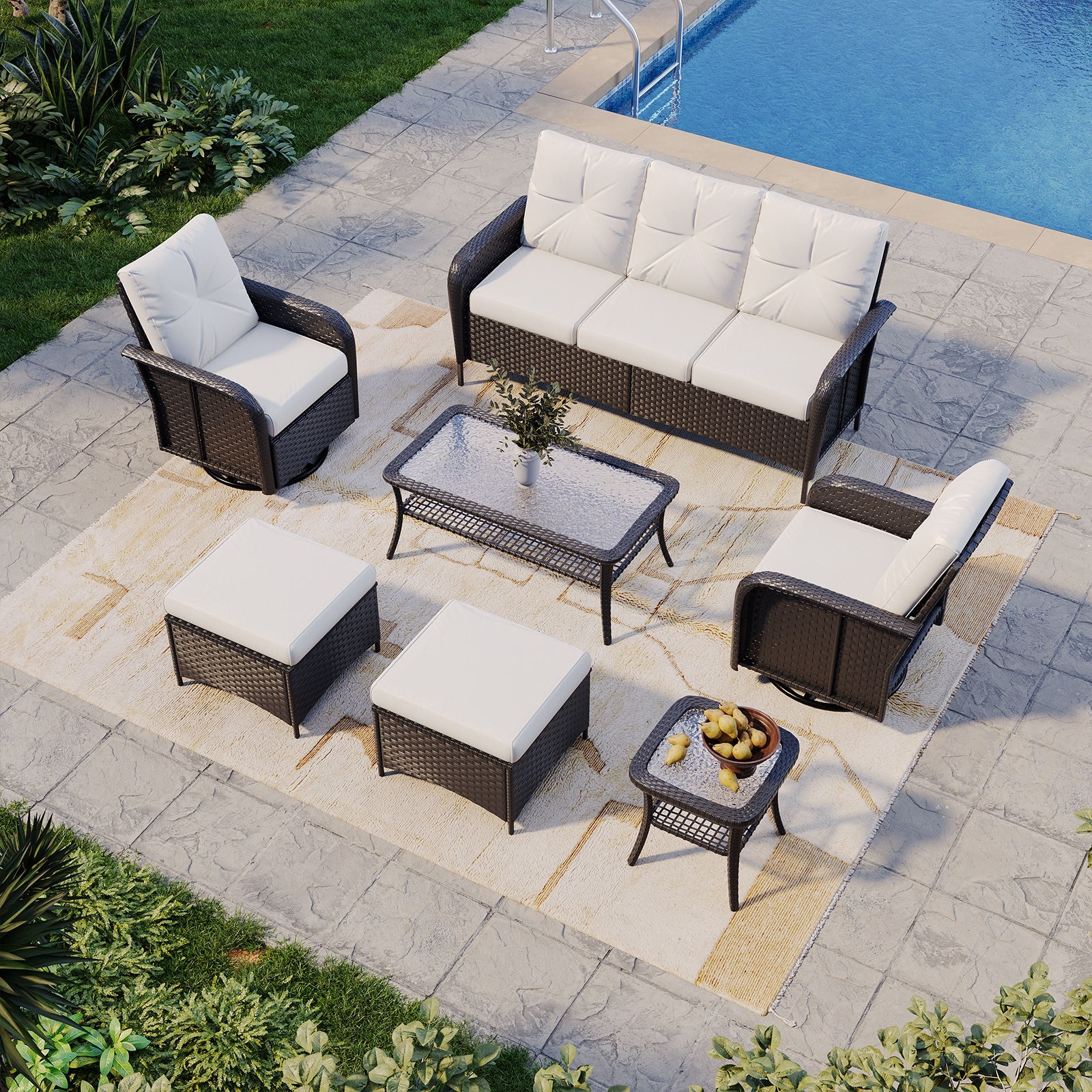 Gymojoy 7-Piece Patio Furniture Set with Swivel Glider Chairs, 6-Inch Ultra-Plush Cushions & Water-Resistant Olefin Fabric