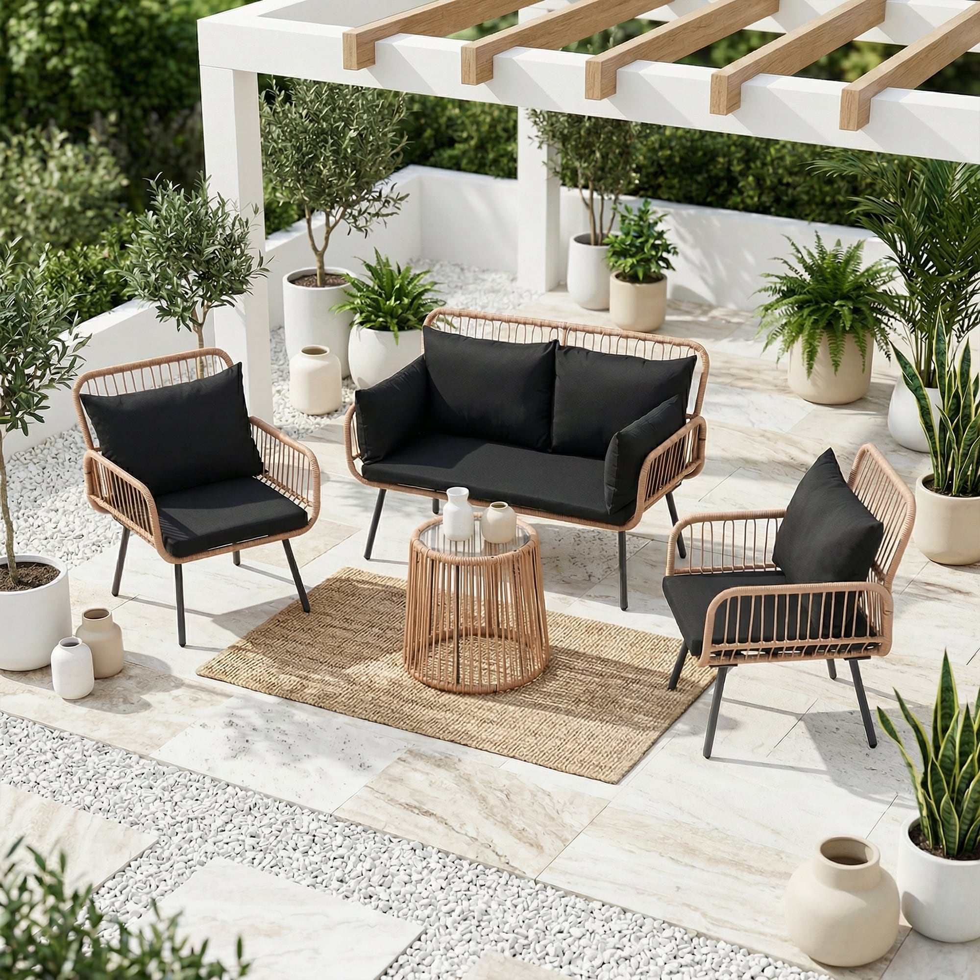 Outdoor Wicker Patio Conversation Furniture Set with Table and Cushion