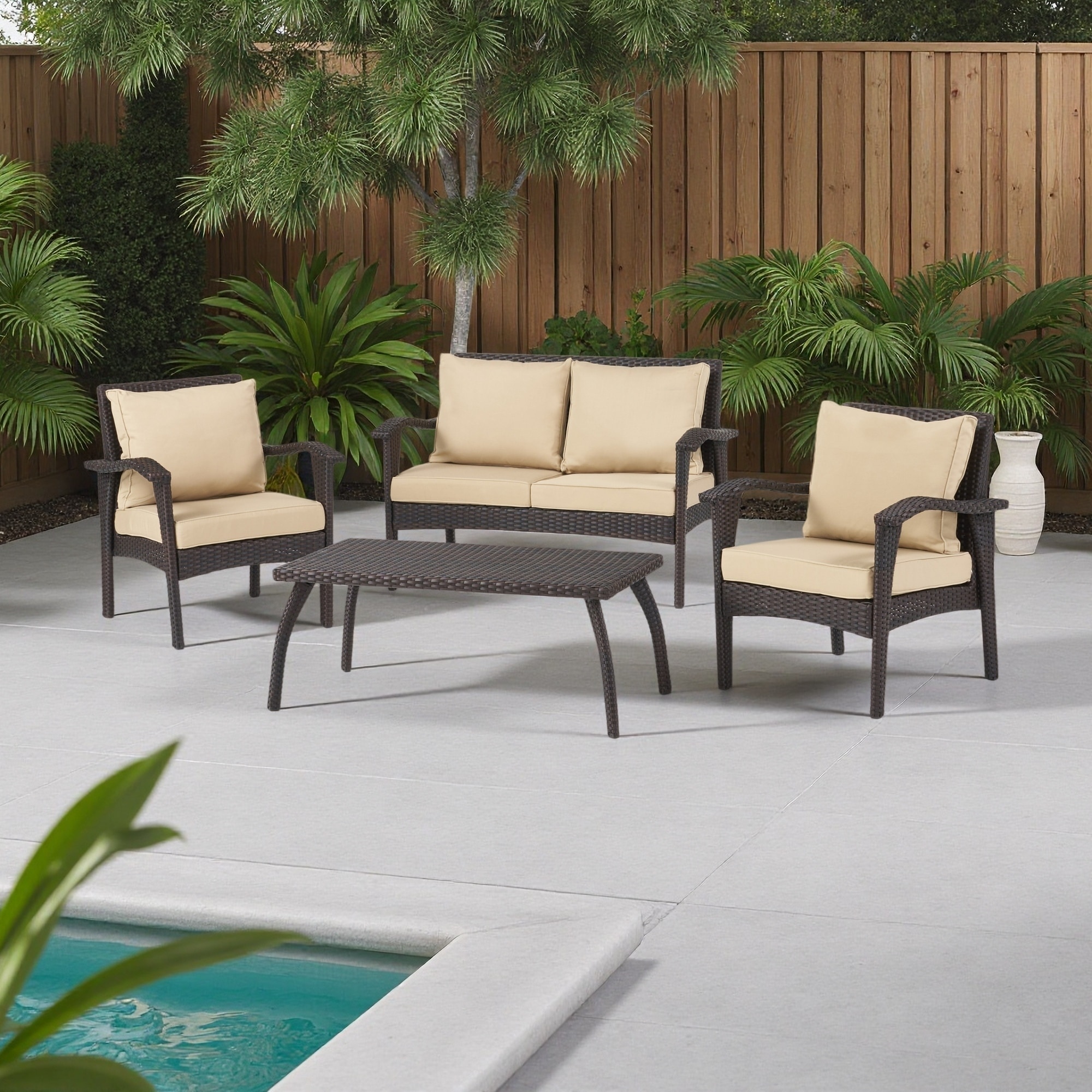 4-Piece Outdoor PE Rattan Weather-Resistant Sofa Set with Waterproof Fabric Cushions and Iron Frame