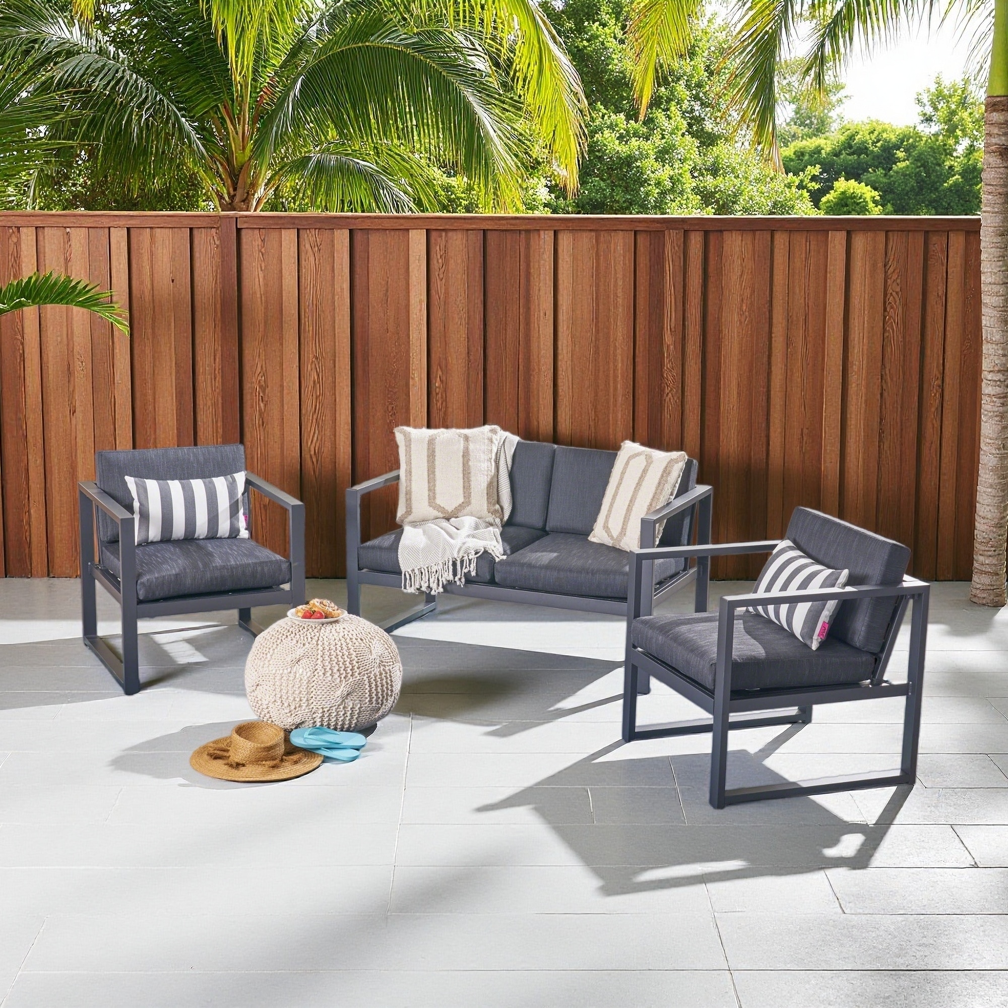 3-Piece Outdoor Rust-Proof Aluminum Chair Set with Extra Plush Cushions