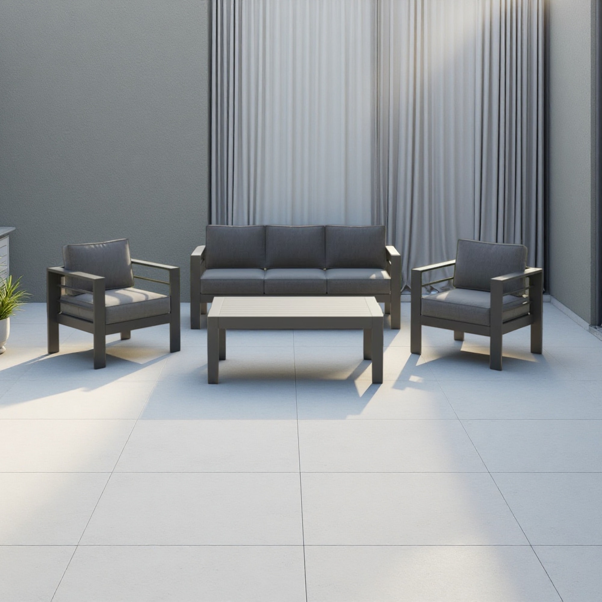 4-Piece Outdoor Powder-Coated Metal All-Weather Patio Sofa Set with 5" Thick Olefin Cushions and Coffee Table