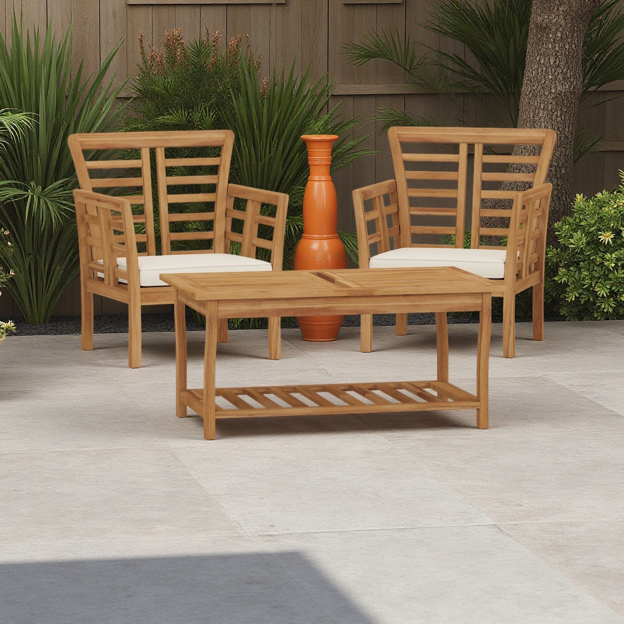3-Piece Outdoor Wood Weather-Resistant Chair Set with Slat Panel Design and Table