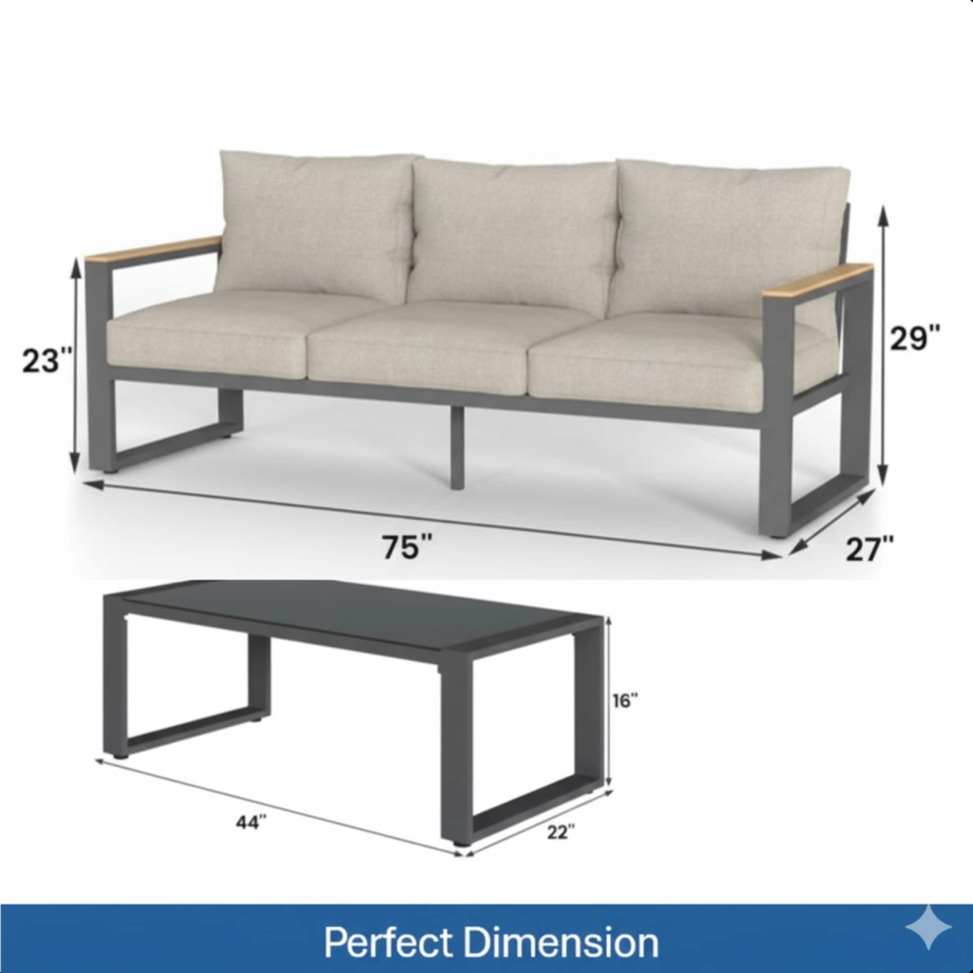 2-Piece 3-Seat Outdoor Sofa Couch Set