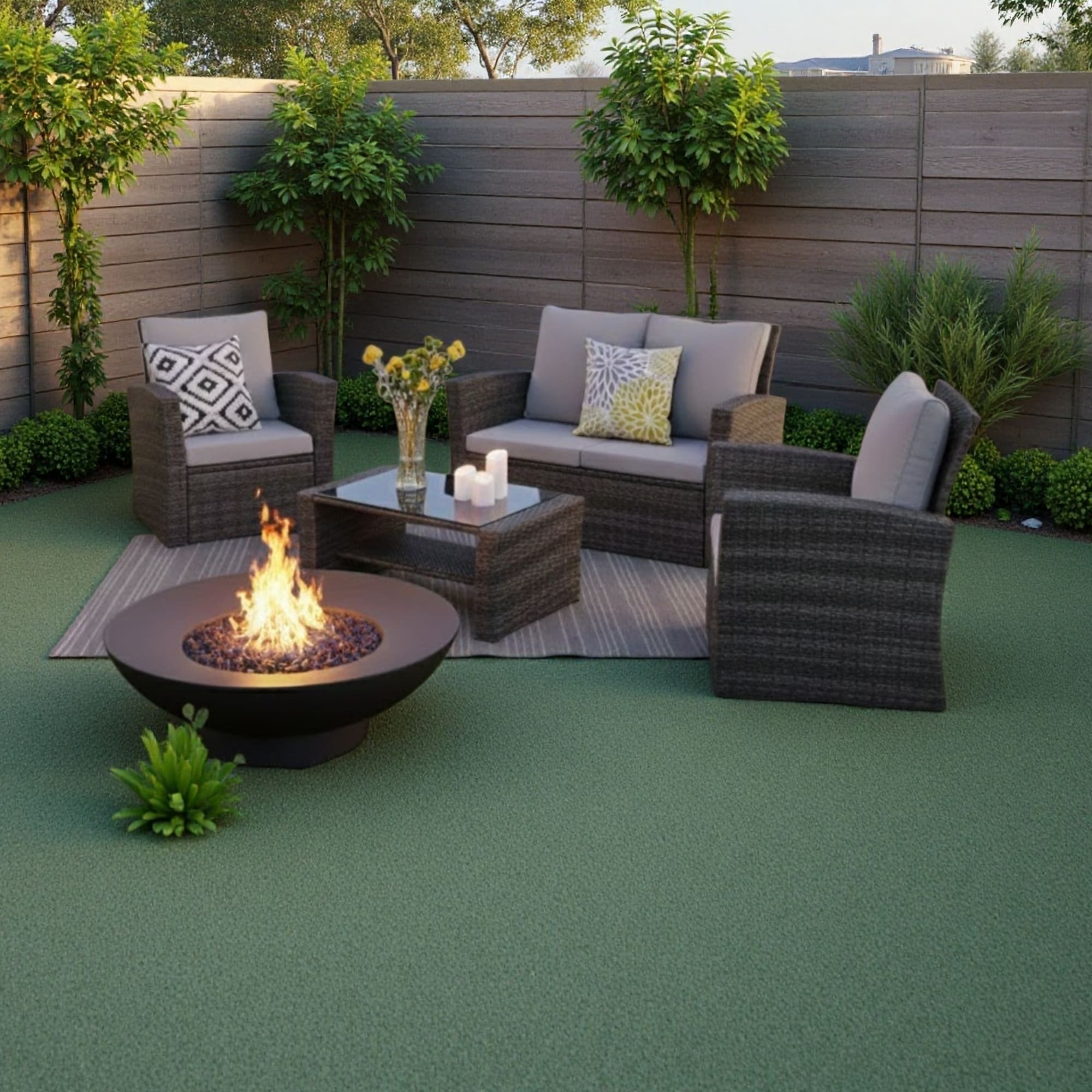 Black Aluminum Fire Table Set with Four Club Chairs