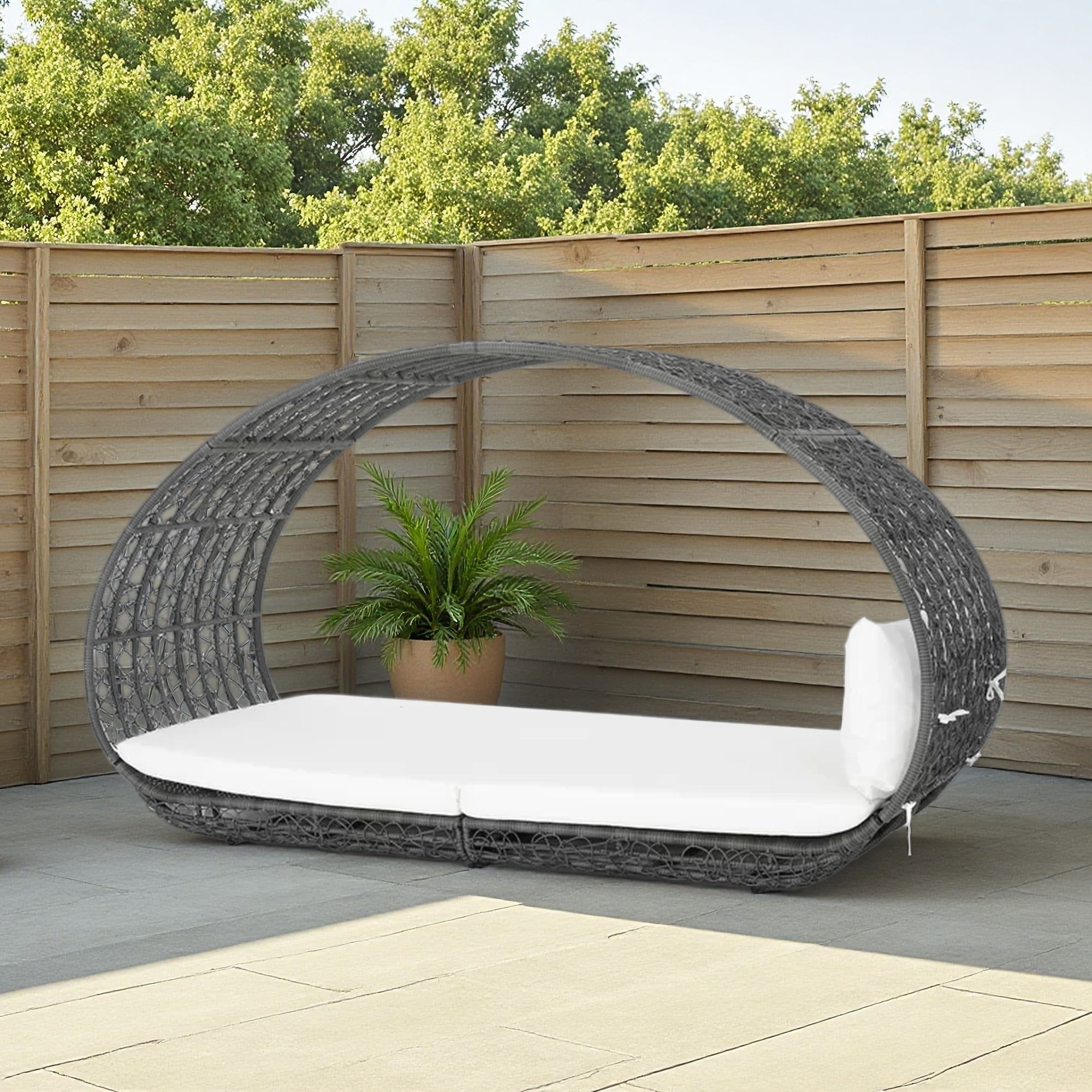 1-Piece Outdoor Wicker Weather-Resistant Canopy Sofa Set with Water-Resistant Cushion and Aluminum Frame