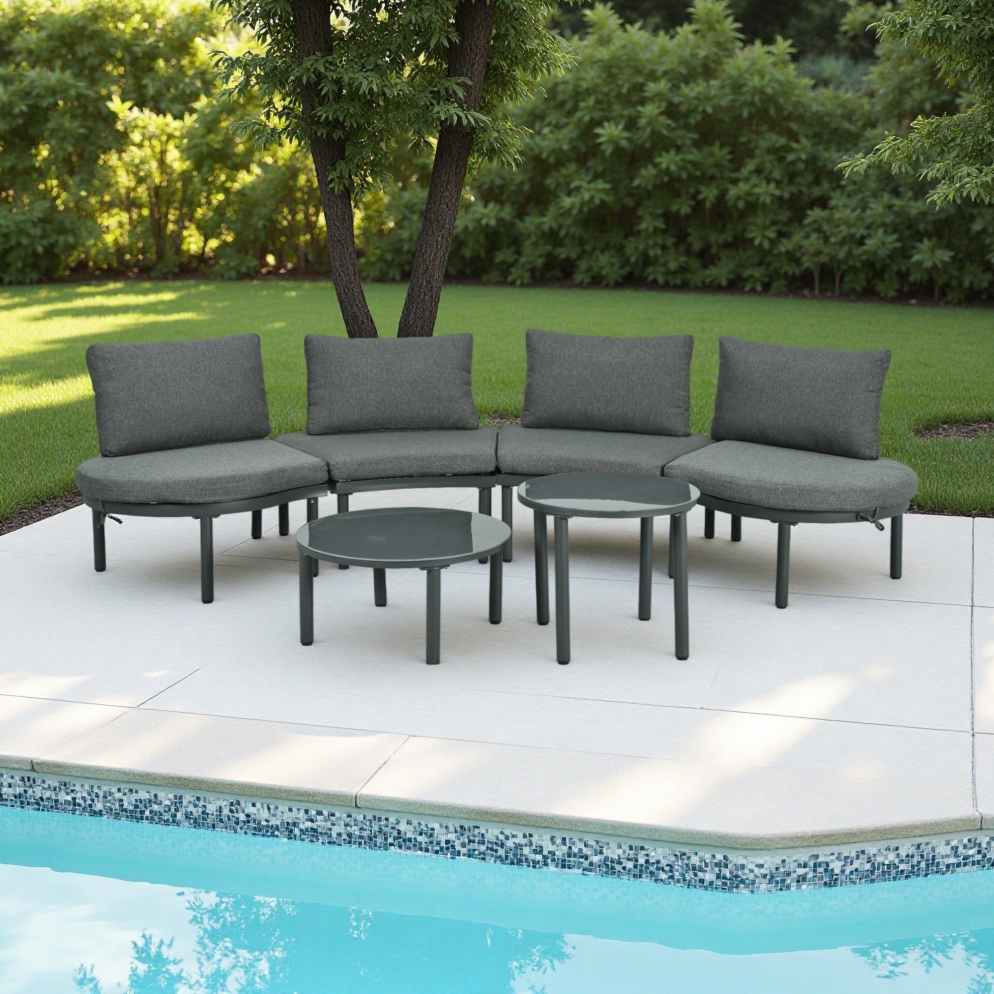 6-Piece Outdoor Aluminum Half-Moon Sectional Sofa Set with 2 Single Sofas, 2 Half-Round Sofas, 2 Coffee Tables and Cushions