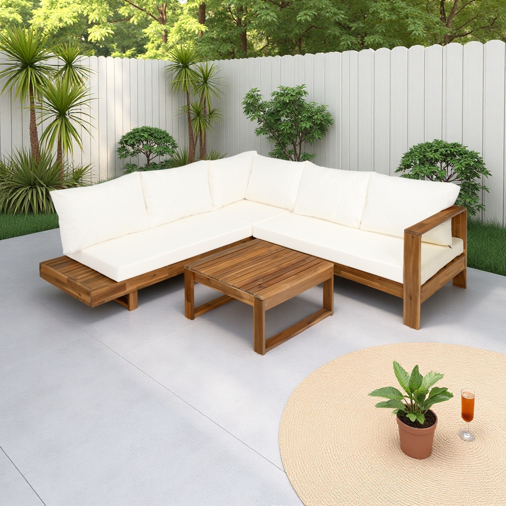 4-Piece Outdoor Acacia Wood Sectional Sofa Set with Corner Chair, Coffee Table and Water-Resistant Cushions