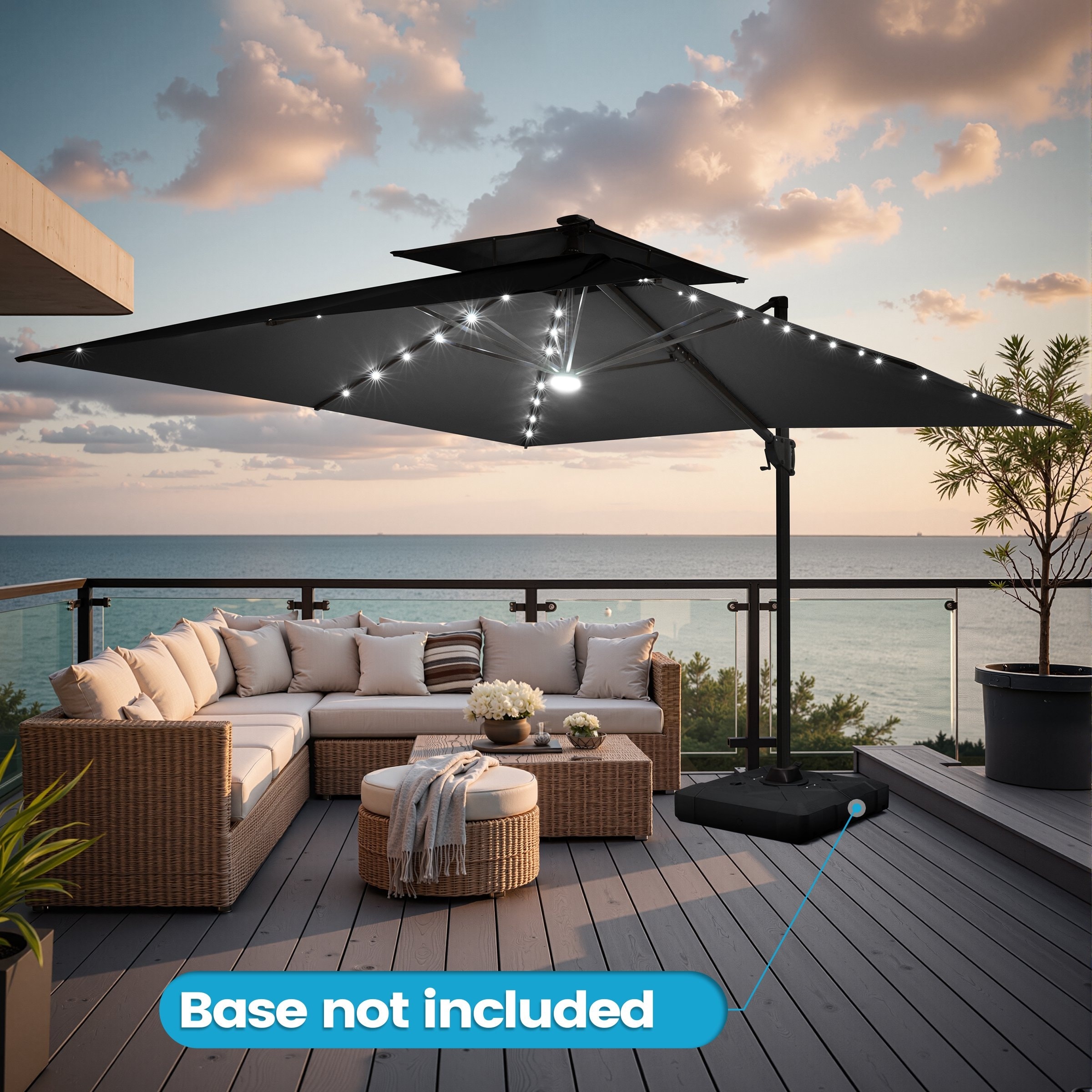 11 FT Square Outdoor Premium Double Top Solar Powered LED Patio Cantilever Umbrella