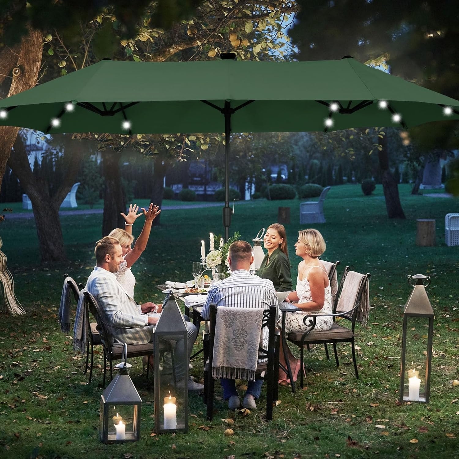 Double-Head Garden Umbrella with LED Lights - 176.8 x 176.8 x 96.5 in