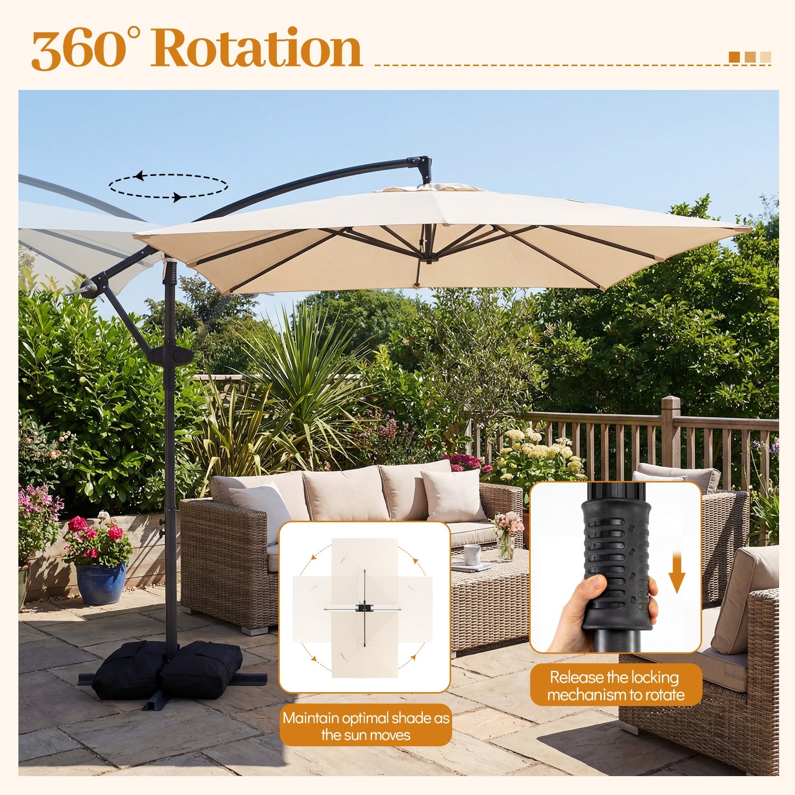 PURPLE LEAF 10 ft Stylish UV50+ Fade Resistant Patio Cantilever Umbrella with 360-degree Rotation