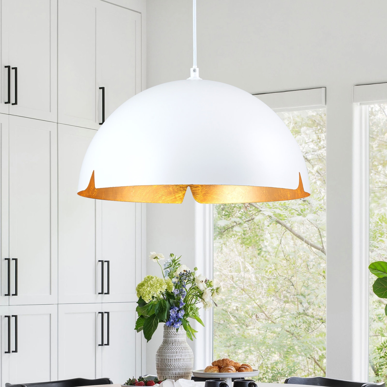 Modern 15" Iron Dome Pendant Light with Gold Foil Interior - Dia.15-in