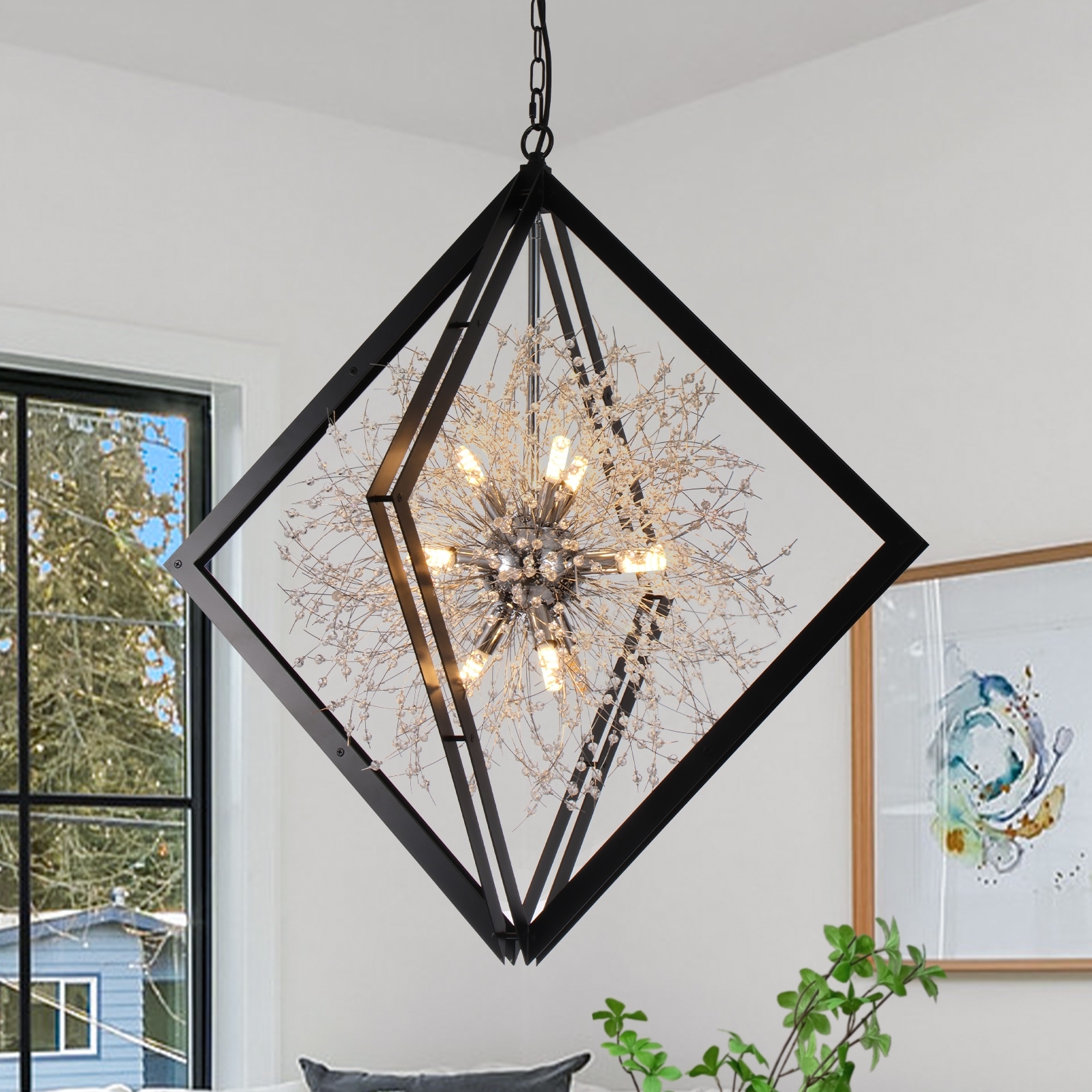 Modern Black Sputnik Crystal Chandelier Pendant Light for Dining Room - Dia.30.71-in