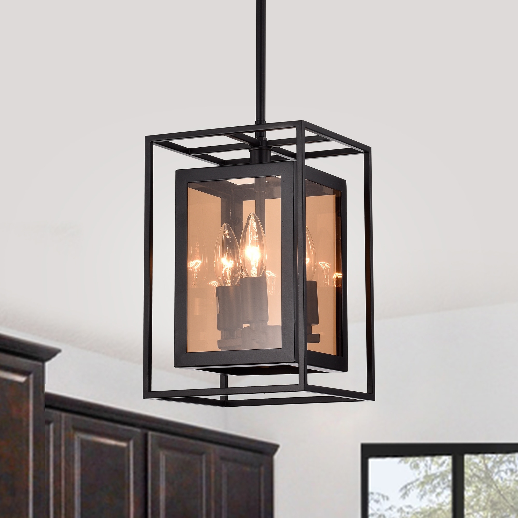 Anhara Matte Black 3-Light Metal & Glass Geometric Pendant Light