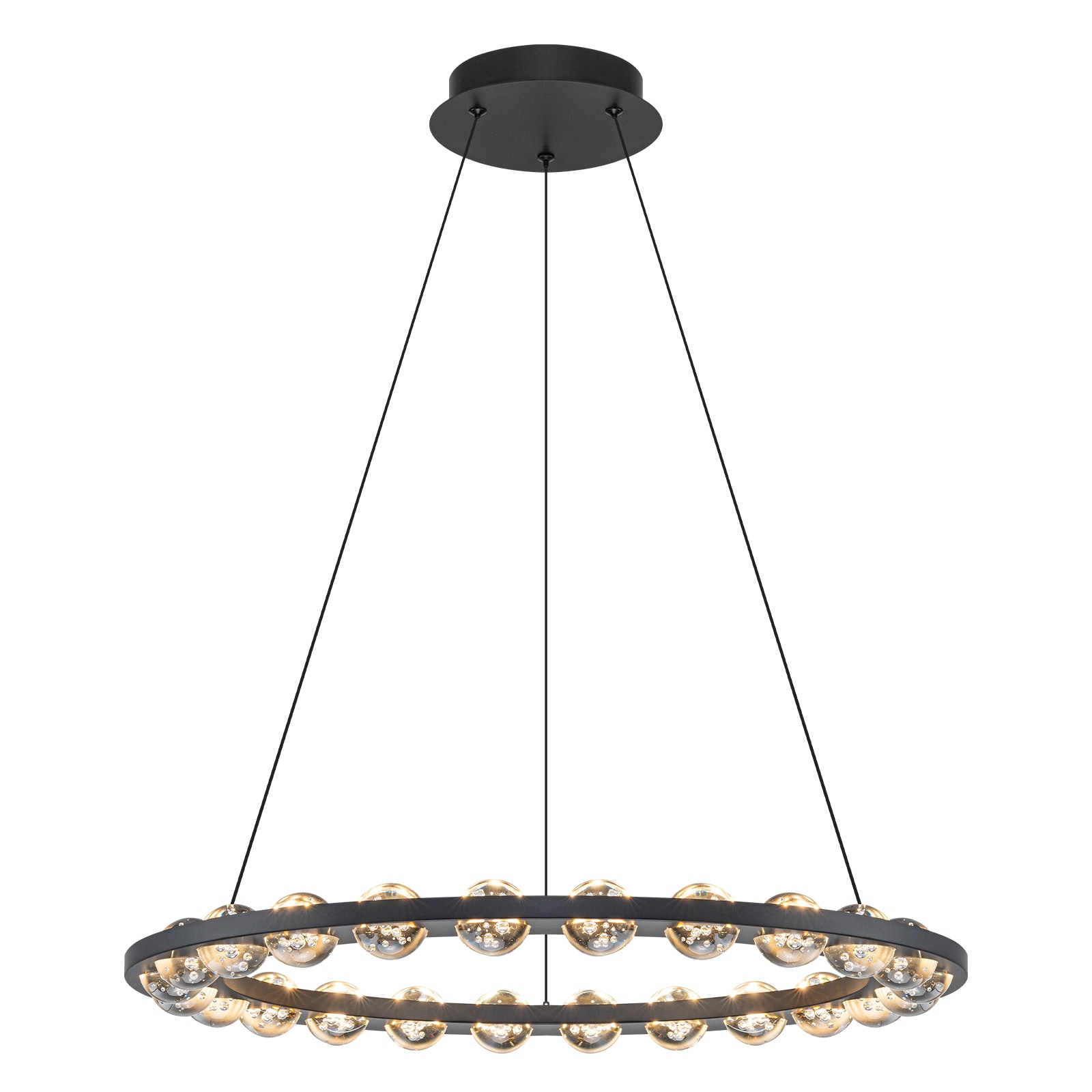 24-Light Modern Black Ring LED Chandelier Clear Bubble Glass Globe - Dia.23.62-in