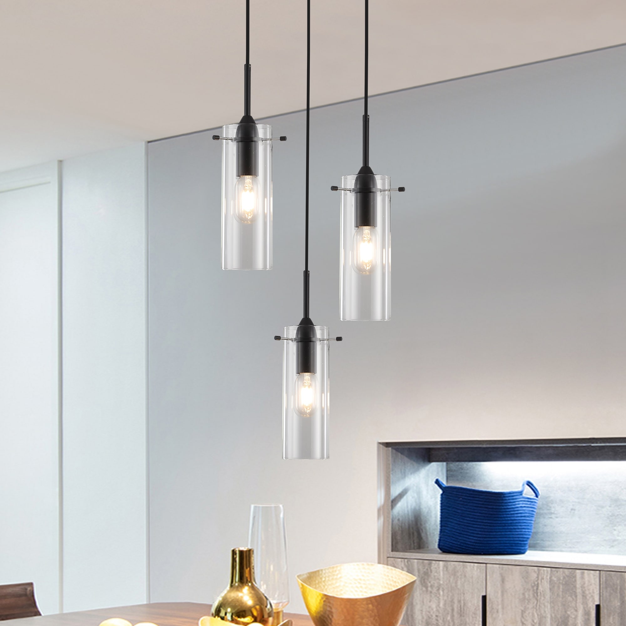 3-Light Modern Cylinder Glass Pendant Light for Kitchen Island