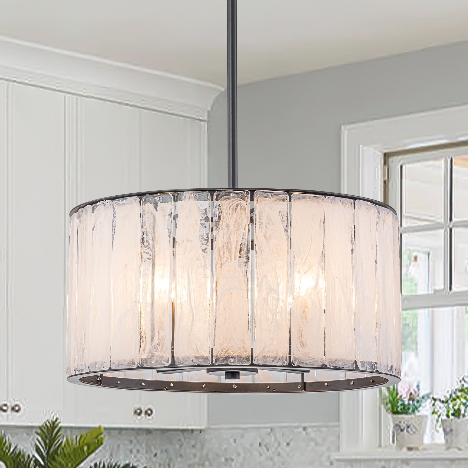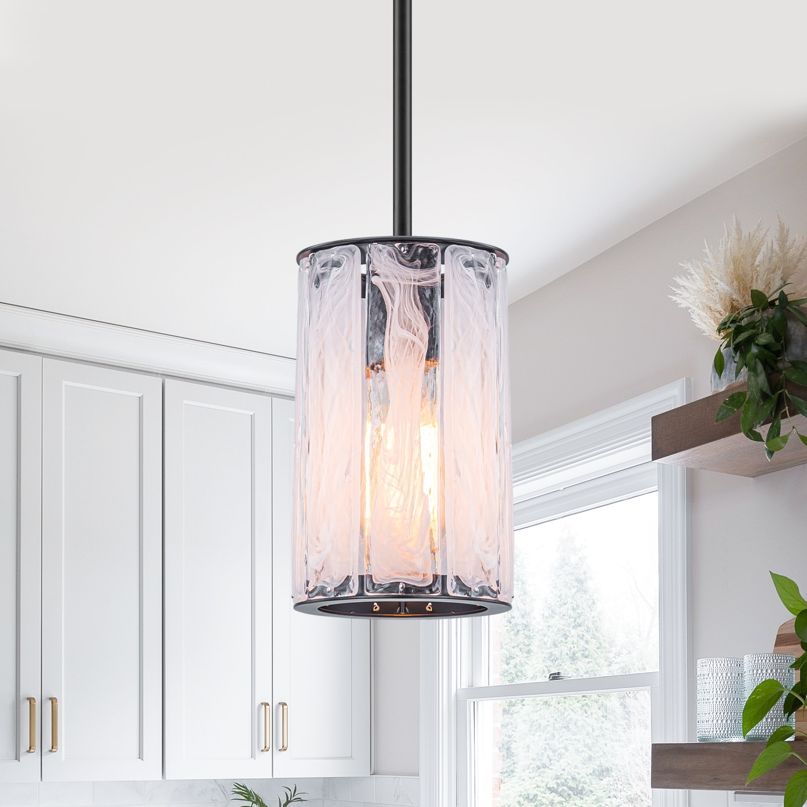 Cloudy White Glass Black Pendant Lighting Modern for Kitchen Island