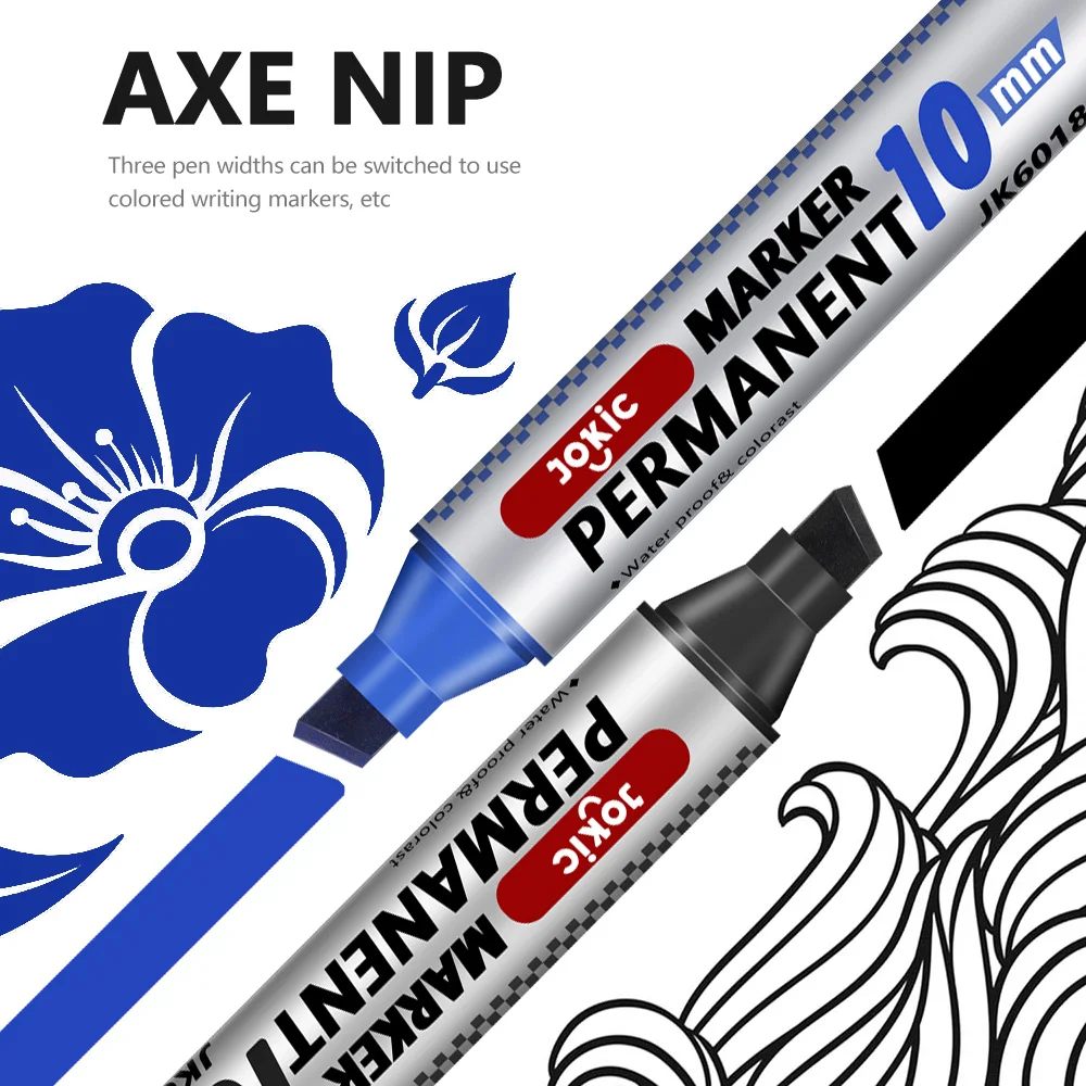 4 Color Permanent Marker Pens Set, Waterproof Ink, Fine And Broad 10mm Nib, Black Blue Red Green mix 4 Pcs
