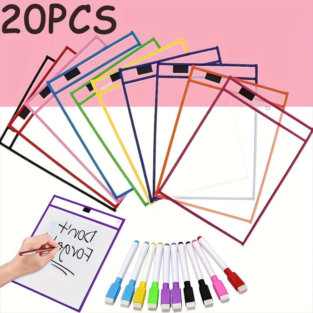 Extra Large Reusable Dry Wipe Pocket Set With Transparent Plastic Protection For Schools Extra Large Reusable Dry Wipe Pocket Set With Transparent Plastic Protection For Schools