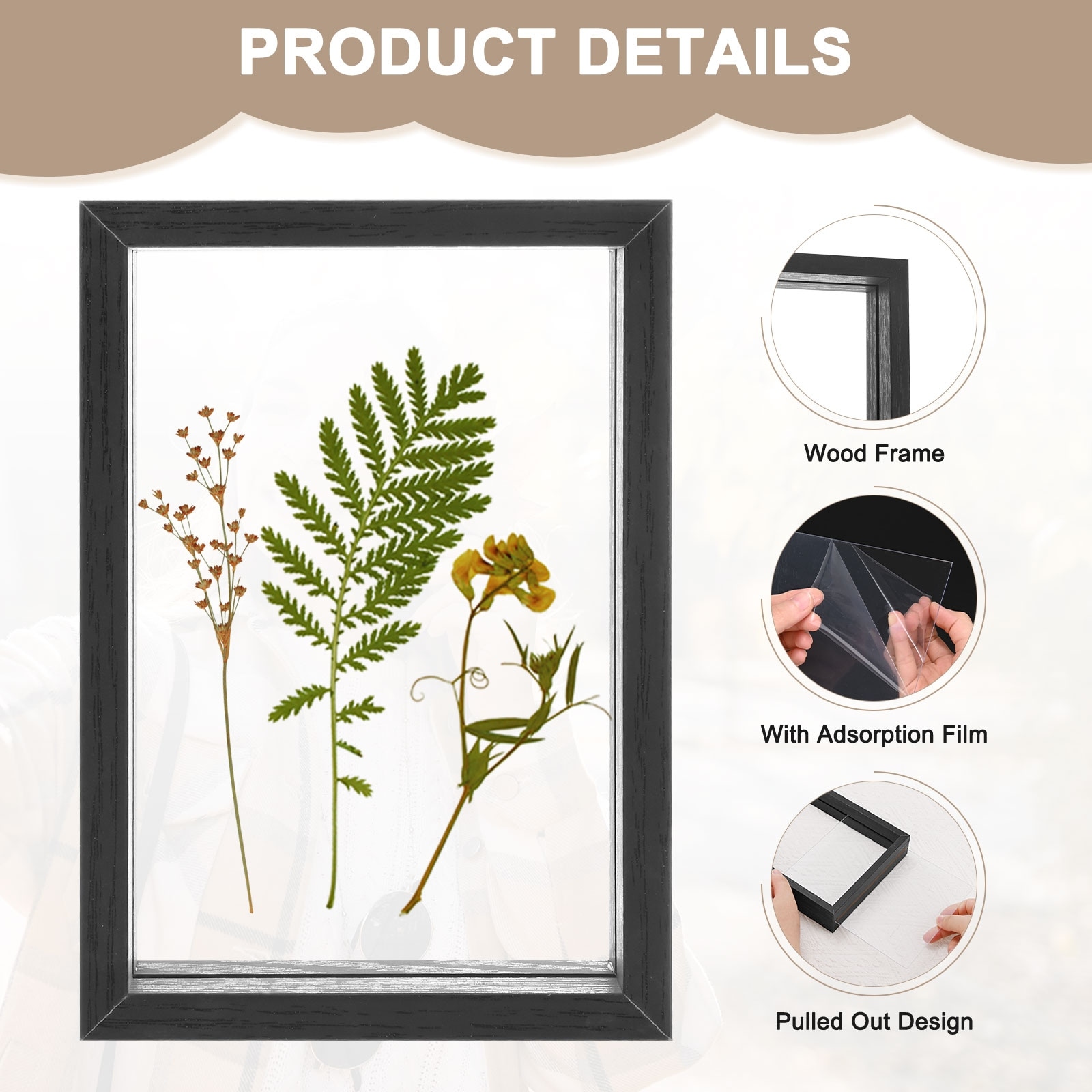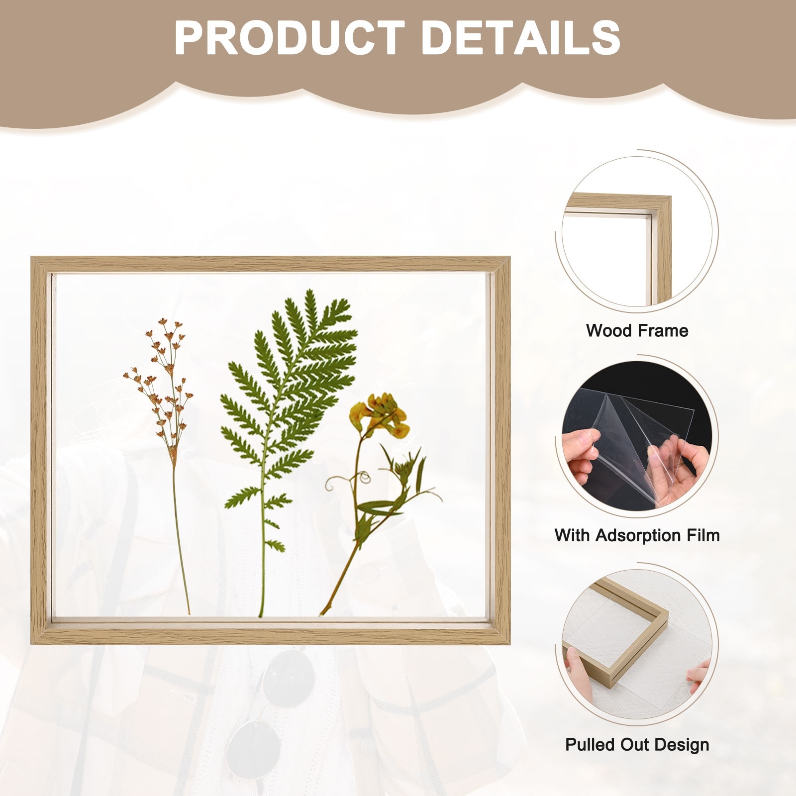 Wooden Pressed Flower Frame, Double Acrylic Floating Picture Frame for Dried Flowers