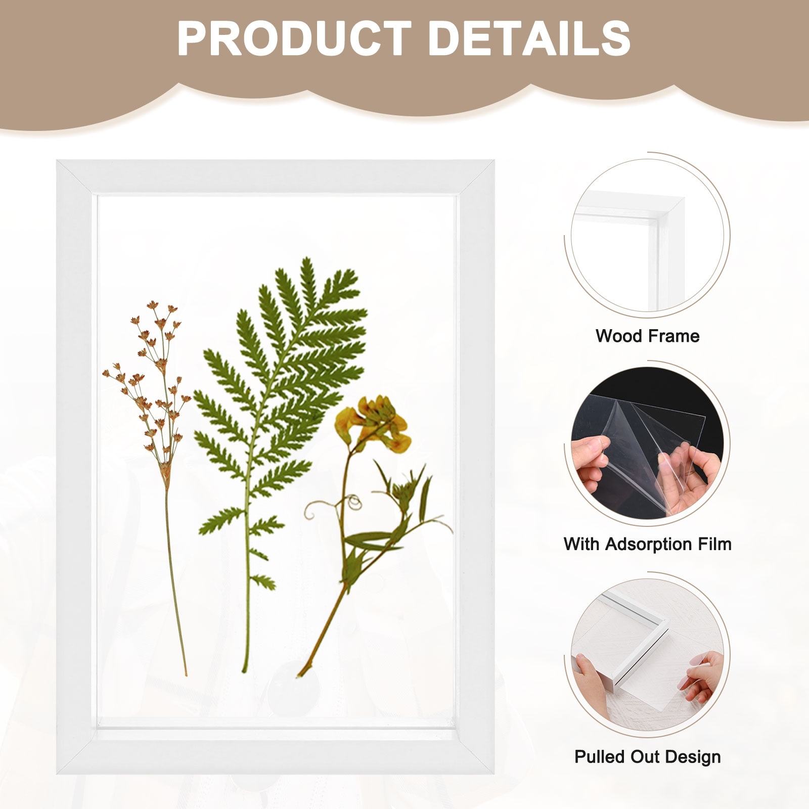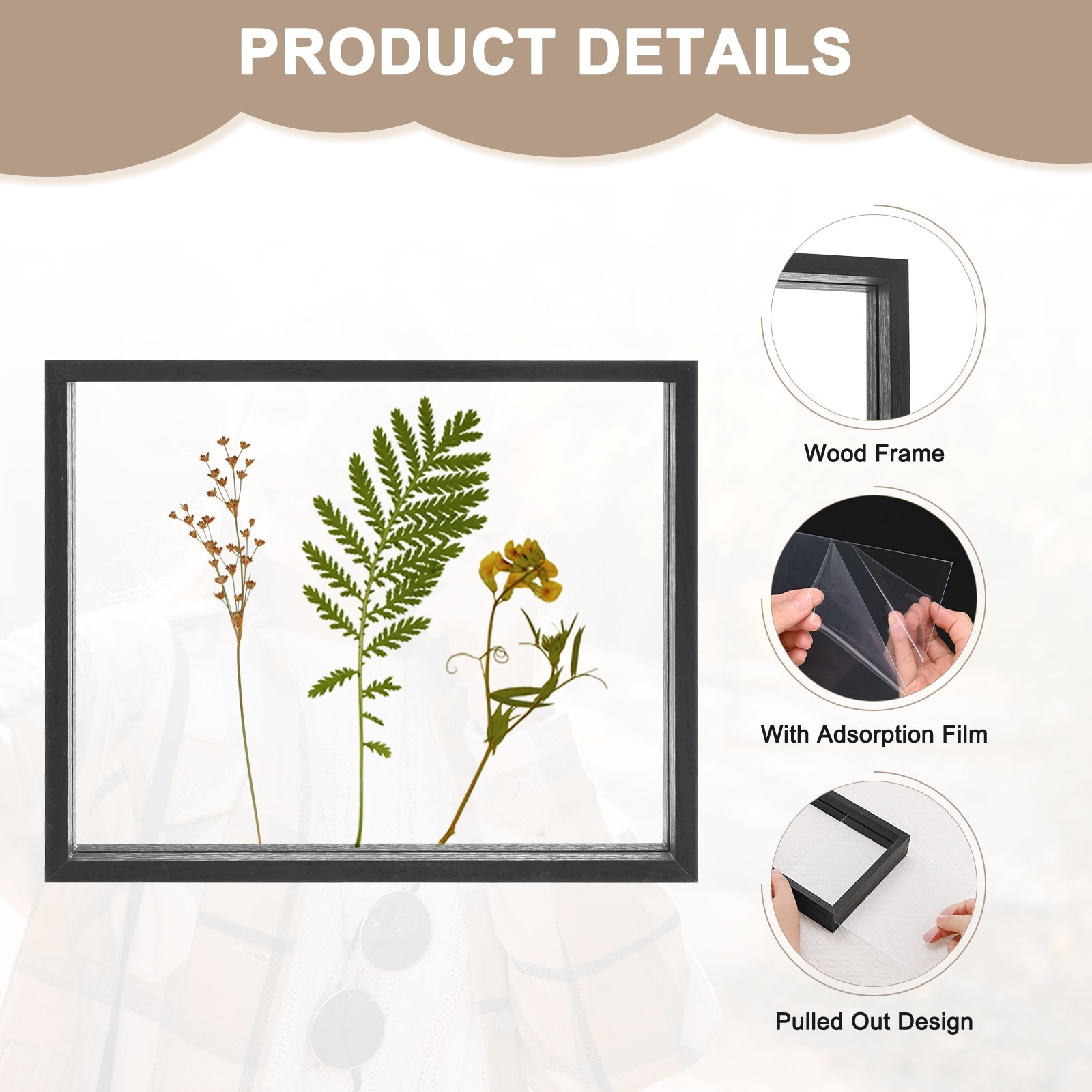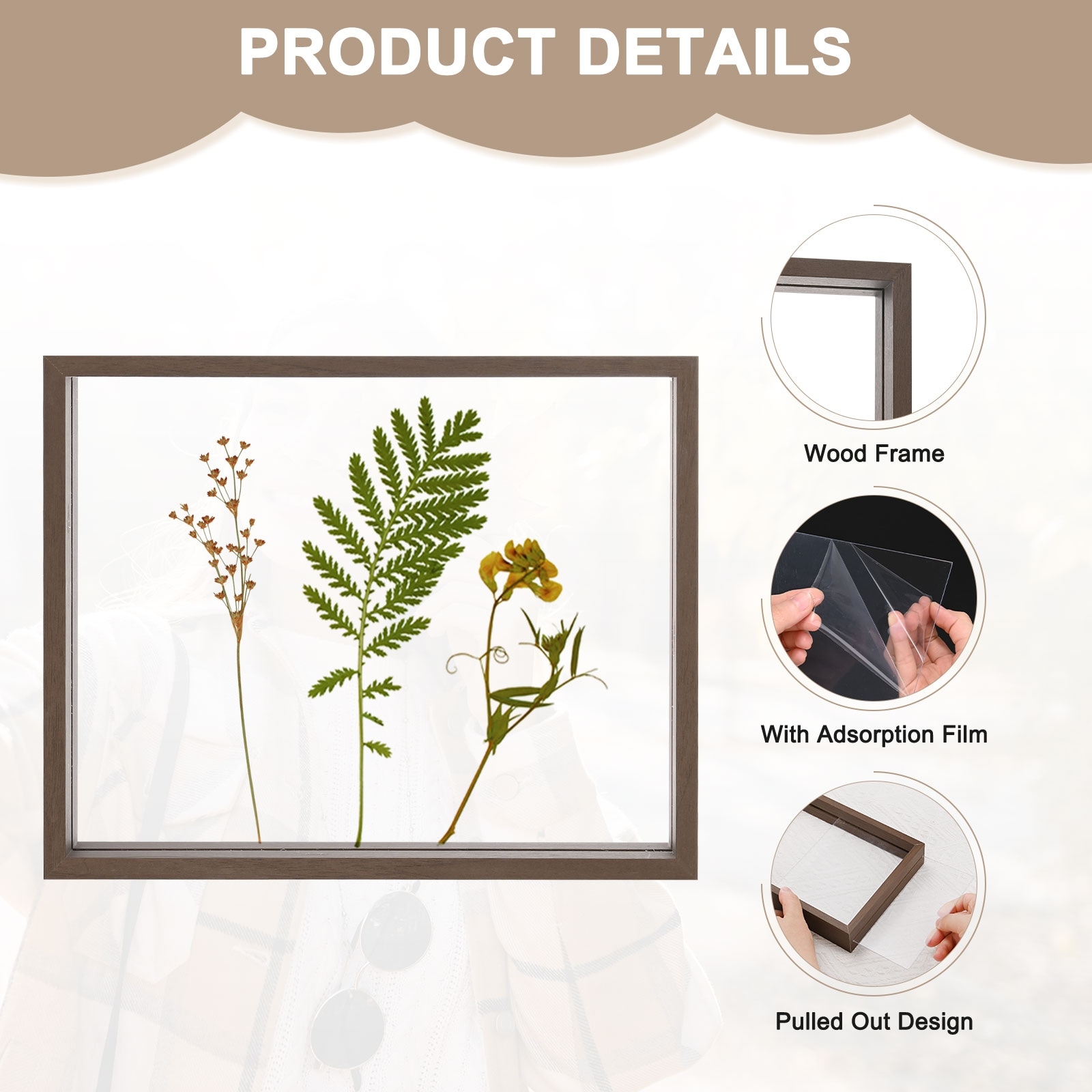 Wooden Pressed Flower Frame, Double Acrylic Floating Picture Frame for Dried Flowers