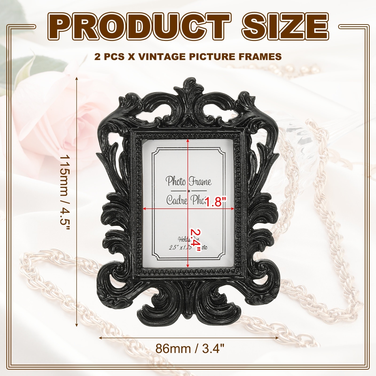 Mini Picture Frames, Resin Small Vintage Picture Frames Baroque Decor for Home Wedding Jewelry Display Hotel Decor Wall