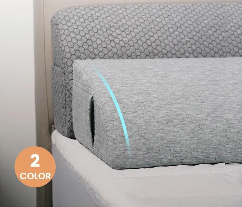 Memory Foam Bed Gap Filler Wedge Pillow With Side Pockets light Grey 16x26x99cm