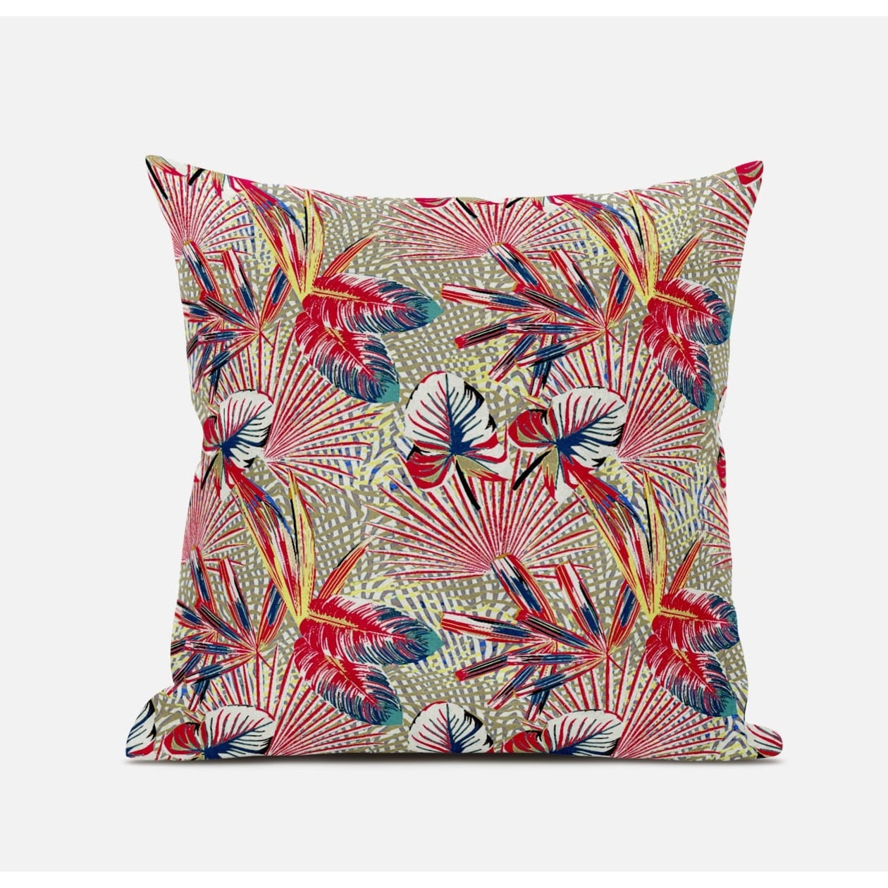 16†Blue Gray Tropical Leaf Suede Throw Pillow