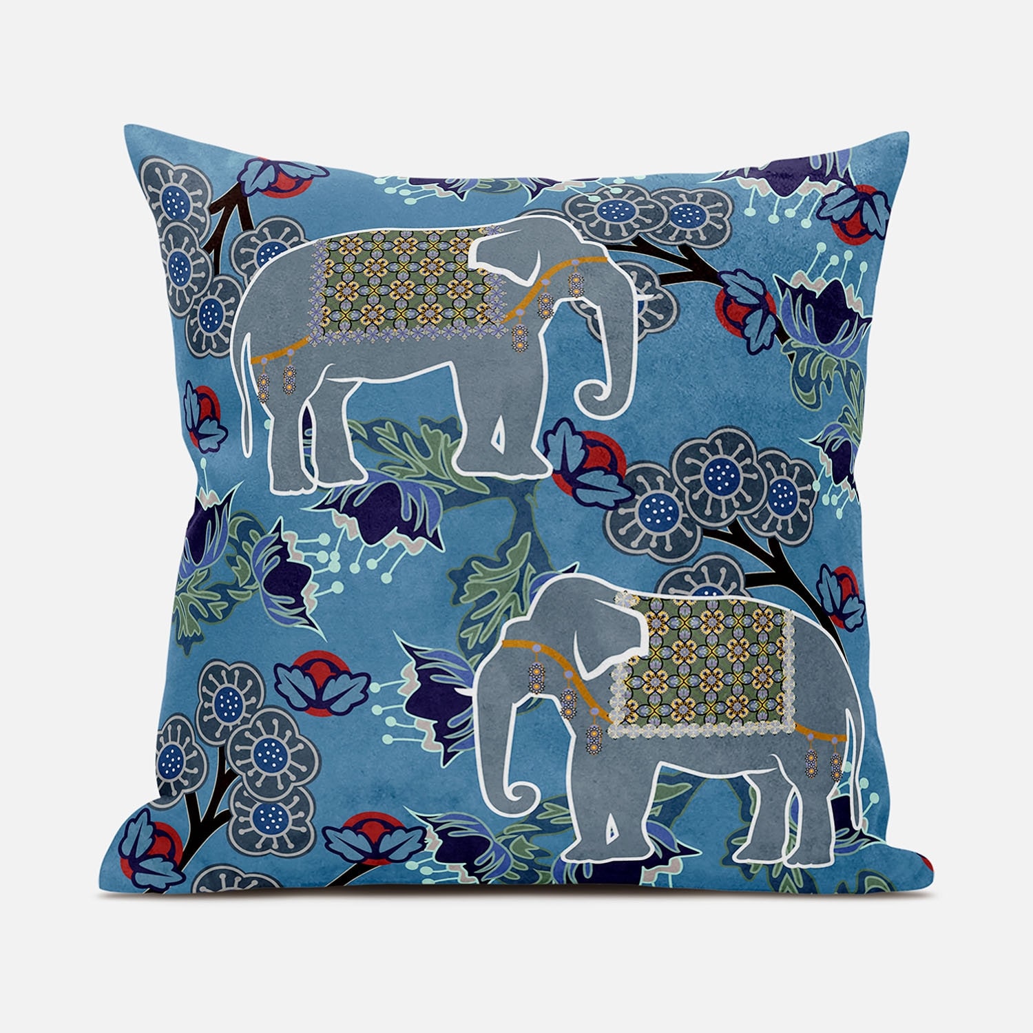 16x16 Blue White Elephant Blown Seam Broadcloth Animal Print Throw Pillow