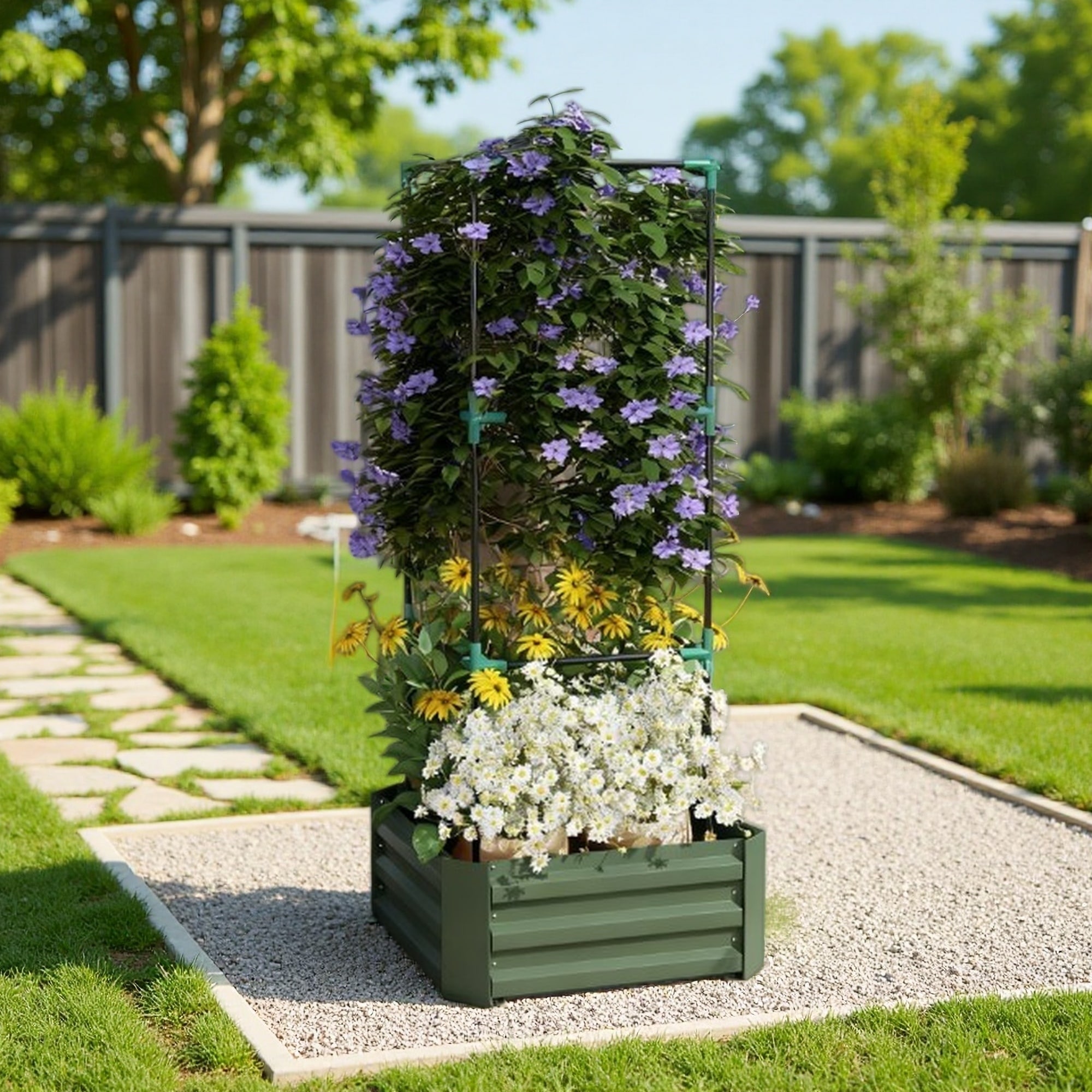 Raised Garden Planter with Trellis and Drainage for Flowers Vegetables