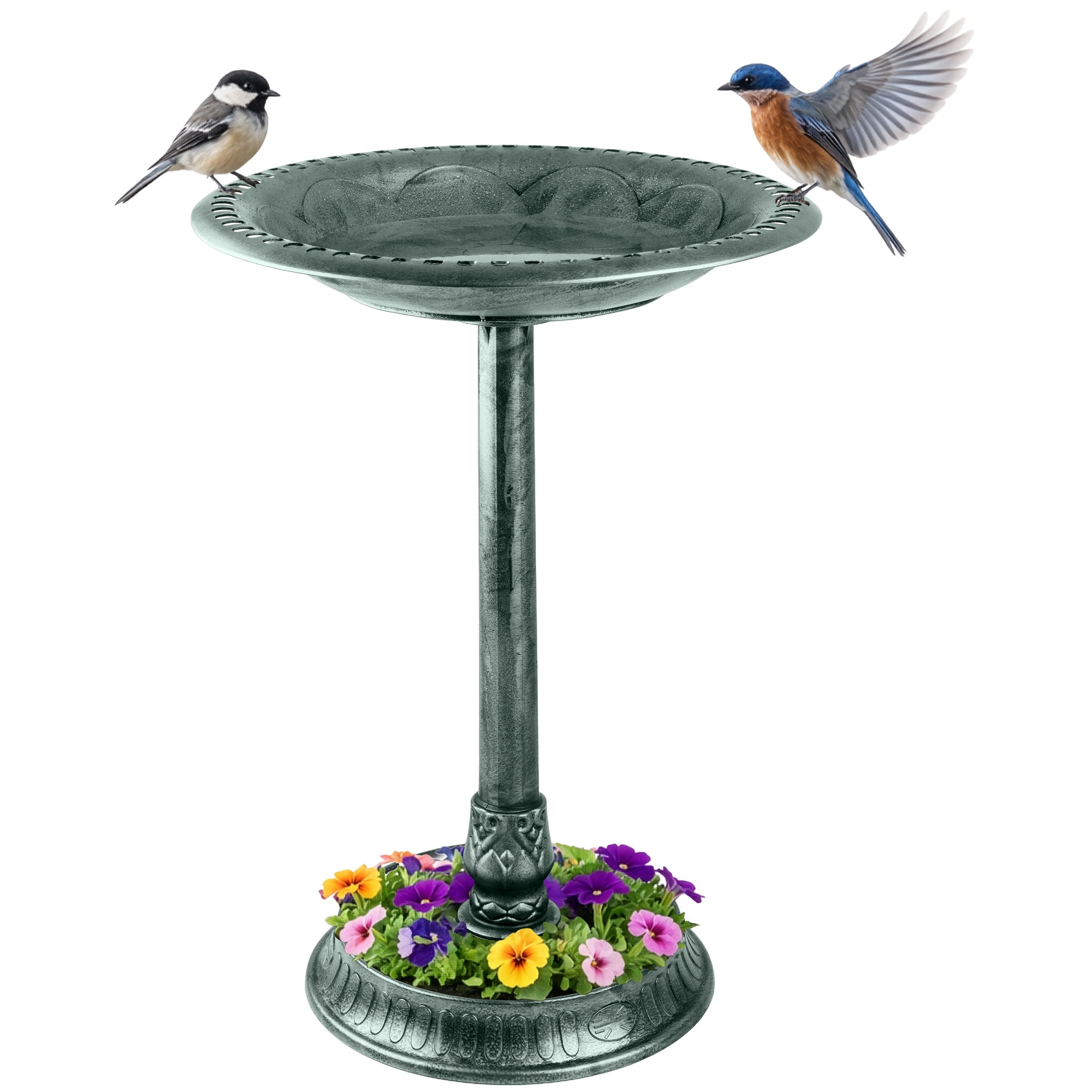 Bird Bath for Outside with Flower Planter Base 28" Tall Pedestal Birdbath Lightweight Garden Statue with Vintage Style