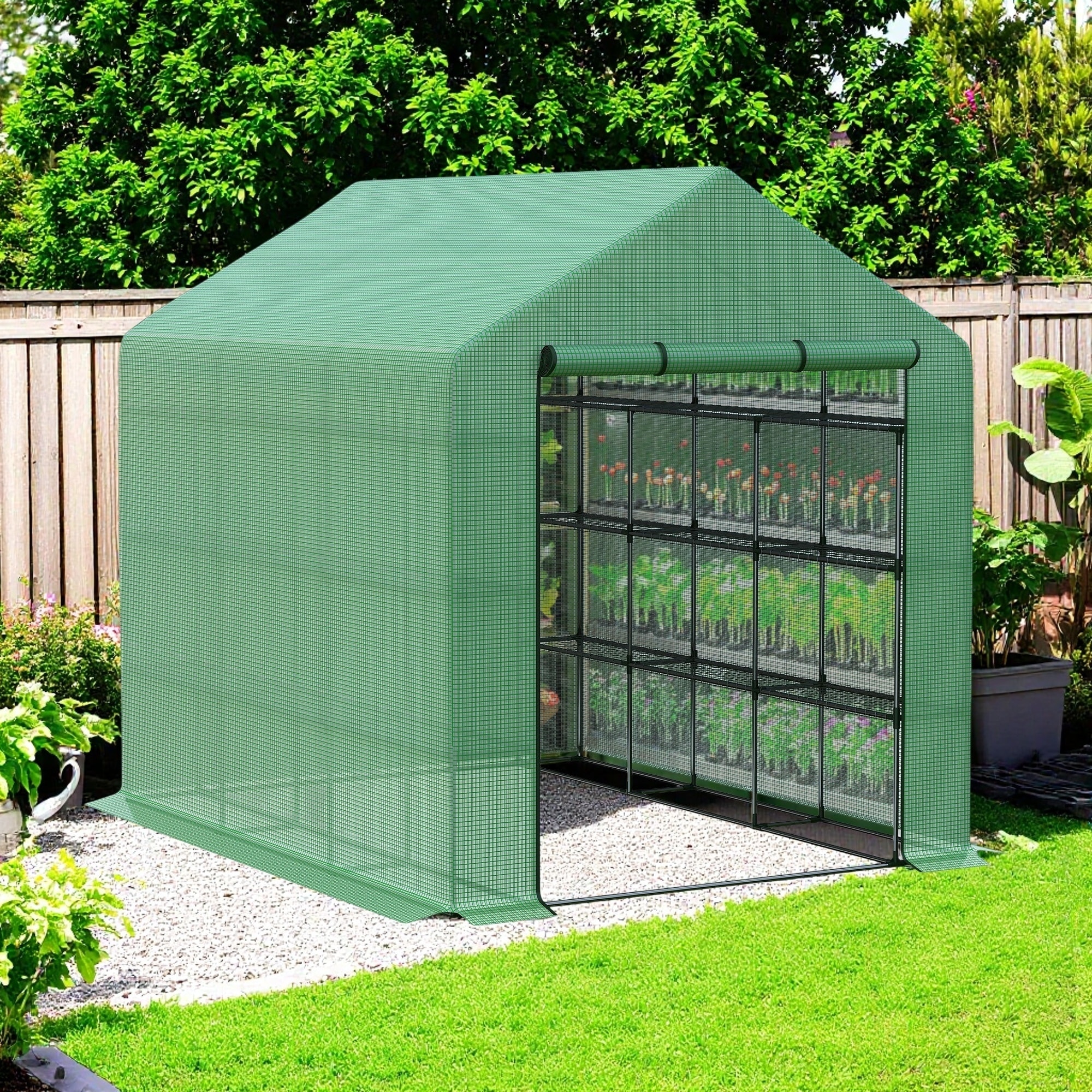 95.25"x70.75"x82.75" Walk-in Greenhouse for Outdoors with Roll-up Zipper Door, 18 Shelves, PE Cover, Heavy Duty Humidity Seal,