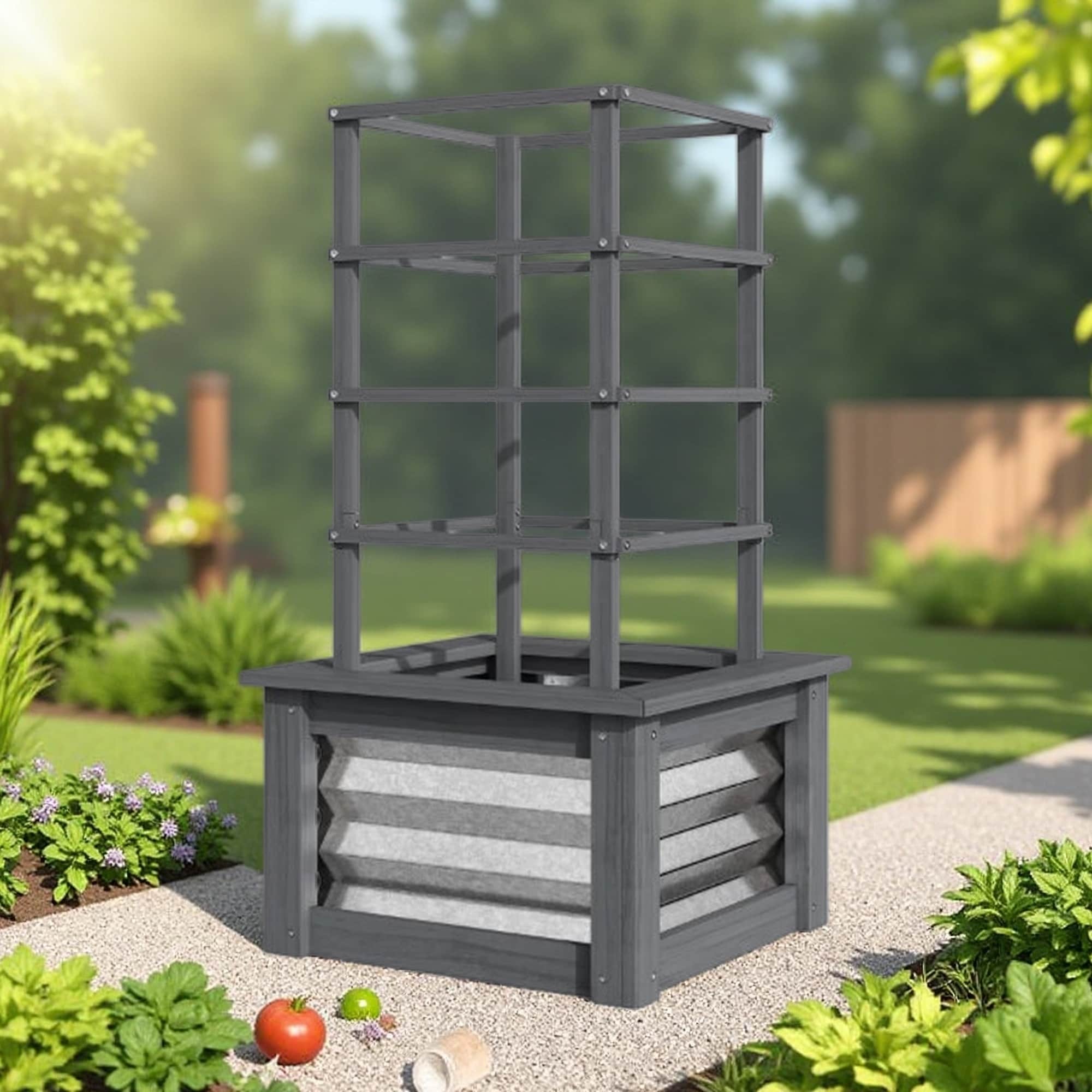 35.4" Tall Versatile Raised Garden Bed, Galvanized Planter Box Elevated Garden Bed, Wooden Garden Bed with Trellis