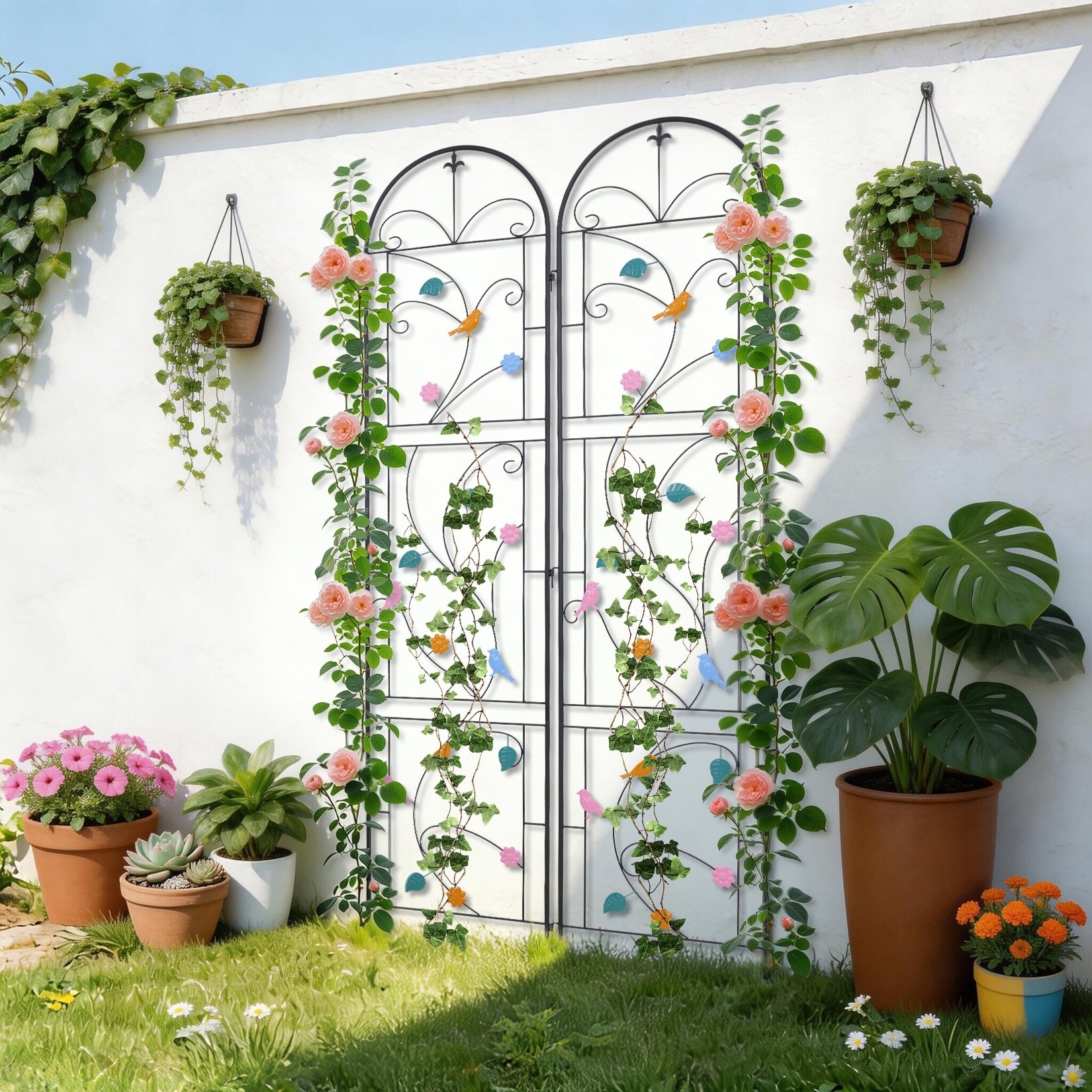 2 Pack 84.2" H x 19.7" W Metal Garden Trellis with Coating, Wire Lattice Grid Panel for Climbing Plants Outdoor - 84.2"x19.6"