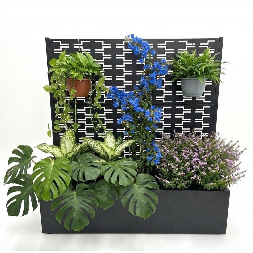 Metal Raised Garden Bed with Trellis, Outdoor Planter Box with Drainage for Climbing Flowers, Durable Vertical Grow Bed - 1