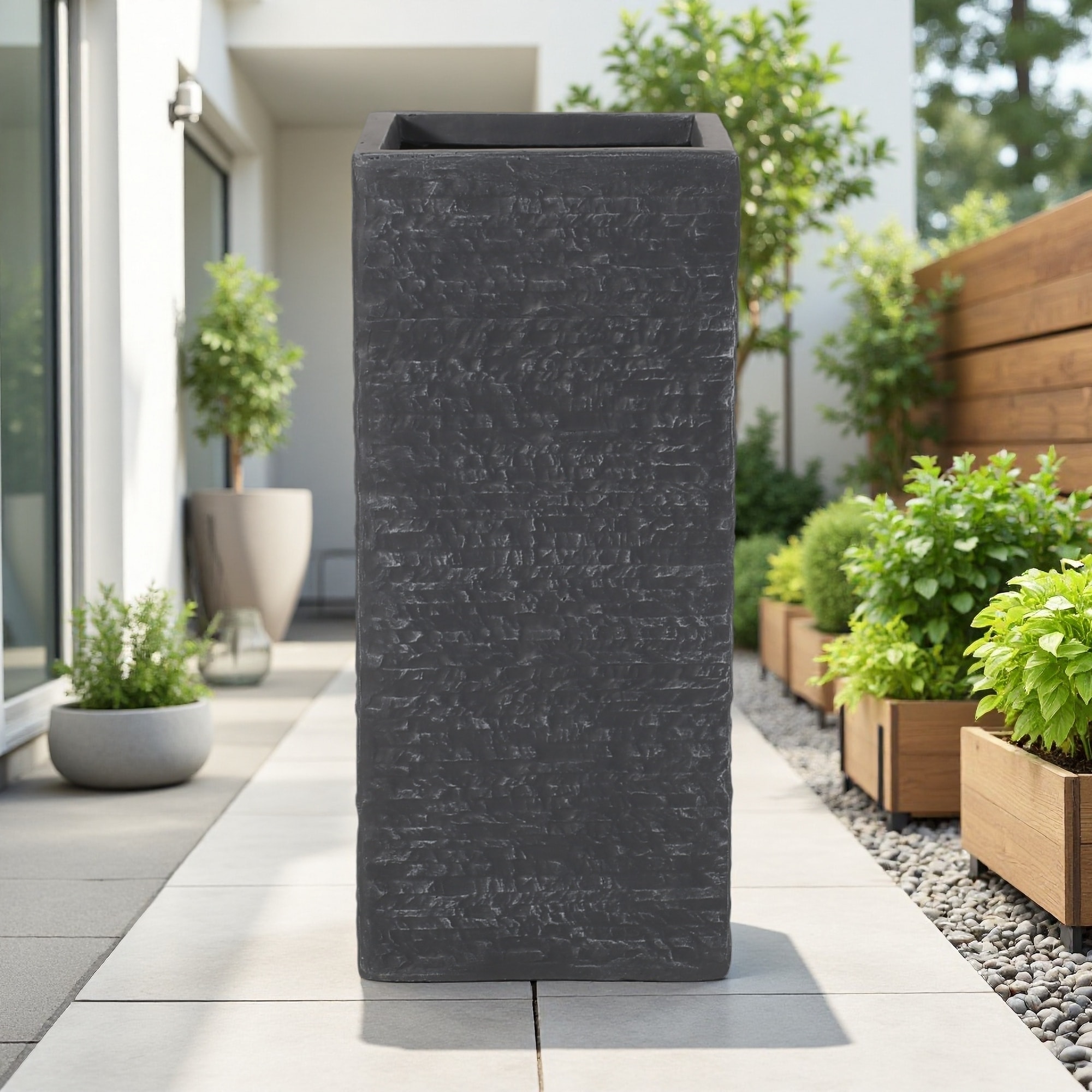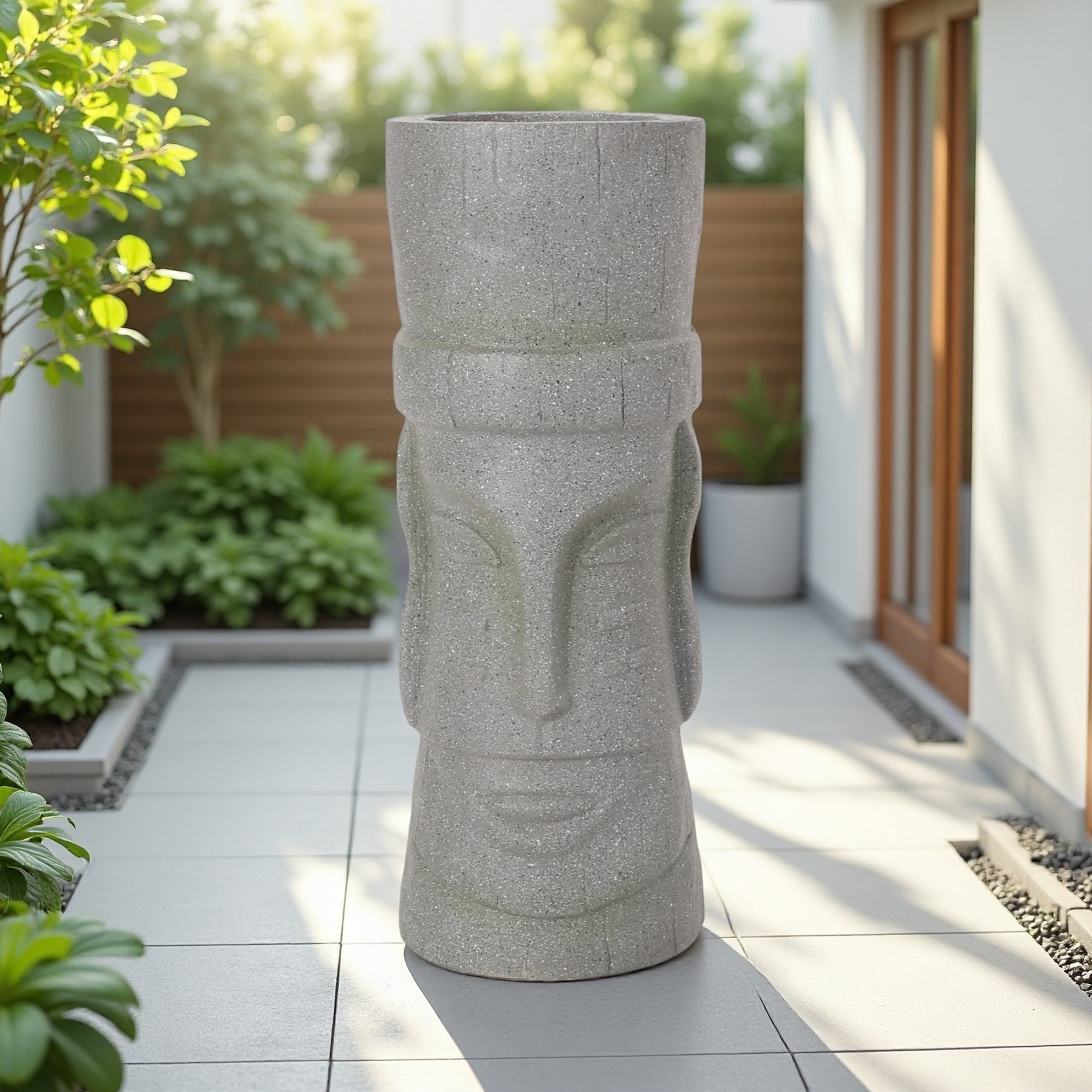 24.25" Tall Cast Stone Planter with Modern & Classic Design, Lightweight Concrete, Durable Outdoor Structure, Handmade