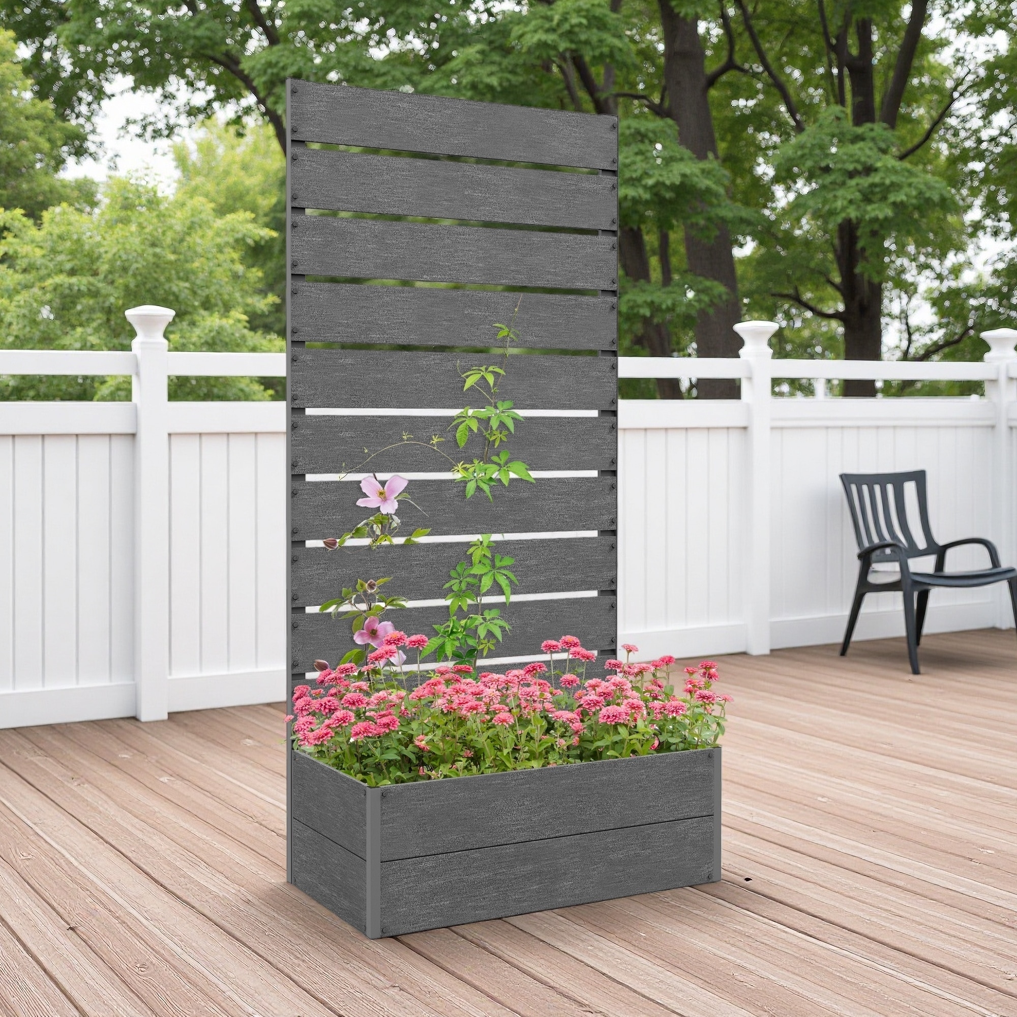 28.25" x 15" x 59" Raised Garden Bed with Trellis, Wood-Plastic Composite Material, Freestanding Planter with Drainage Gap
